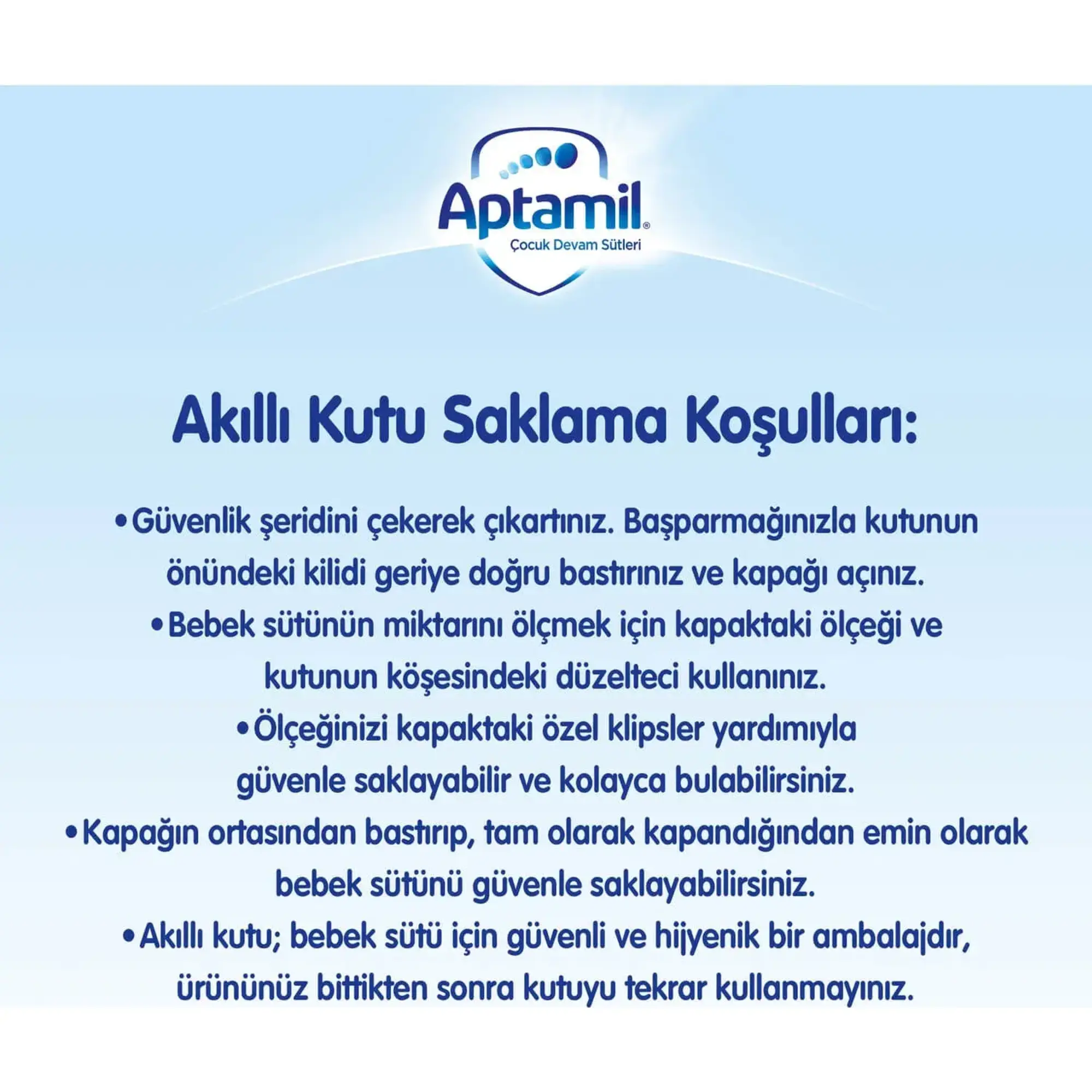 Aptamil 1 Bebek Sütü ilave şeker içermez. Etiket üzerinde yer alan şekerler bilgisi mevzuat gereği zorunlu gösterim şeklidir. Doğal olarak sütte bulunan süt şekeri yani laktozu ifade etmektedir. (Karbonhidrat kaynağı %100 laktozdur.)