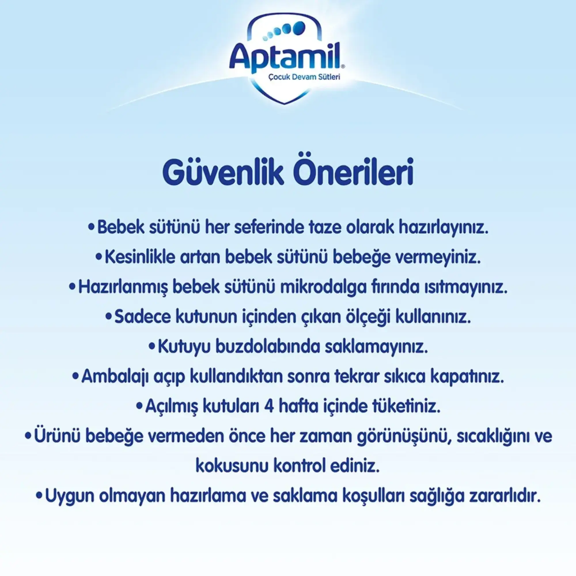 Aptamil 1 Bebek Sütü ilave şeker içermez. Etiket üzerinde yer alan şekerler bilgisi mevzuat gereği zorunlu gösterim şeklidir. Doğal olarak sütte bulunan süt şekeri yani laktozu ifade etmektedir. (Karbonhidrat kaynağı %100 laktozdur.)