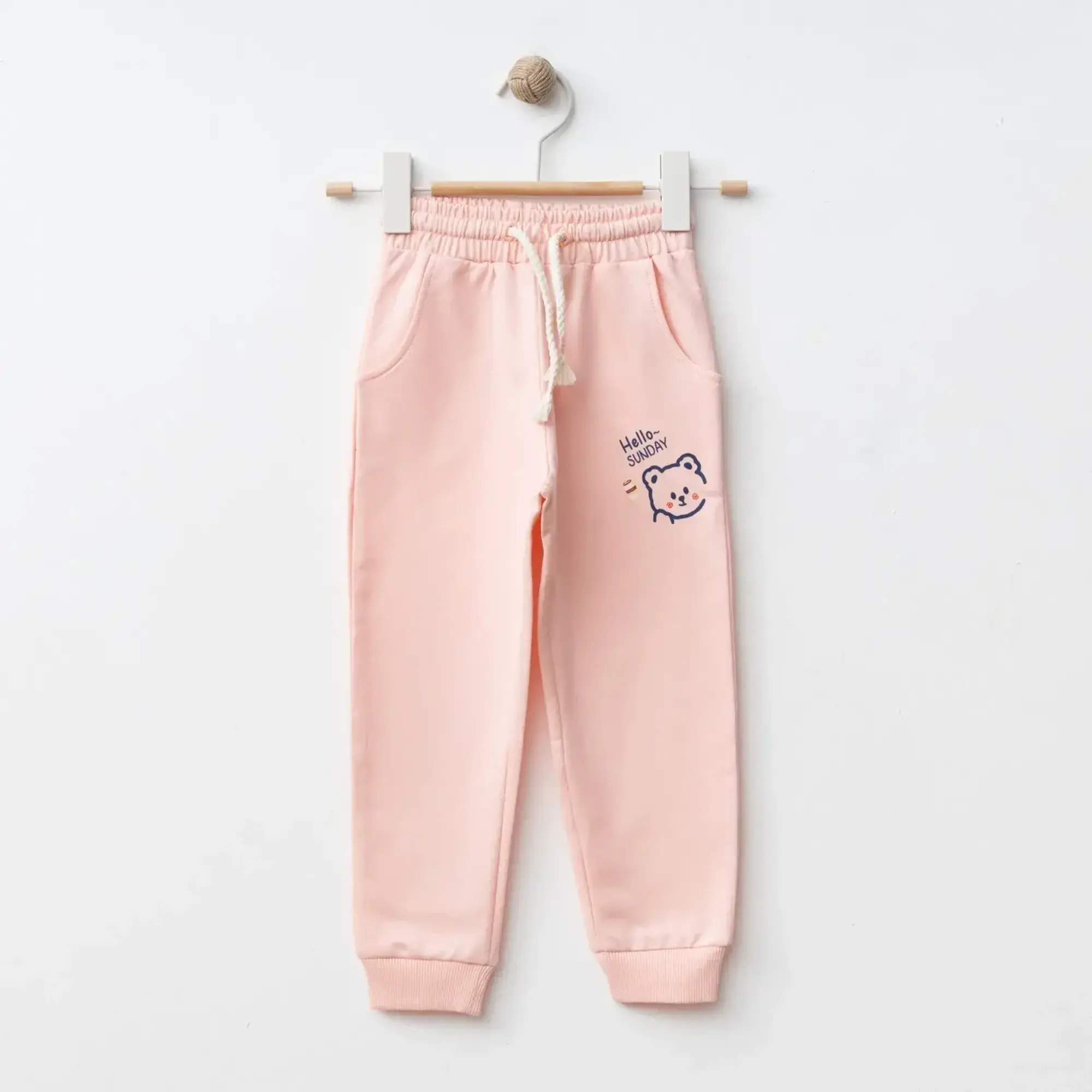 Bebolly Eşofman Altı Hello Sunday Ayıcıklı Baskılı Pudra