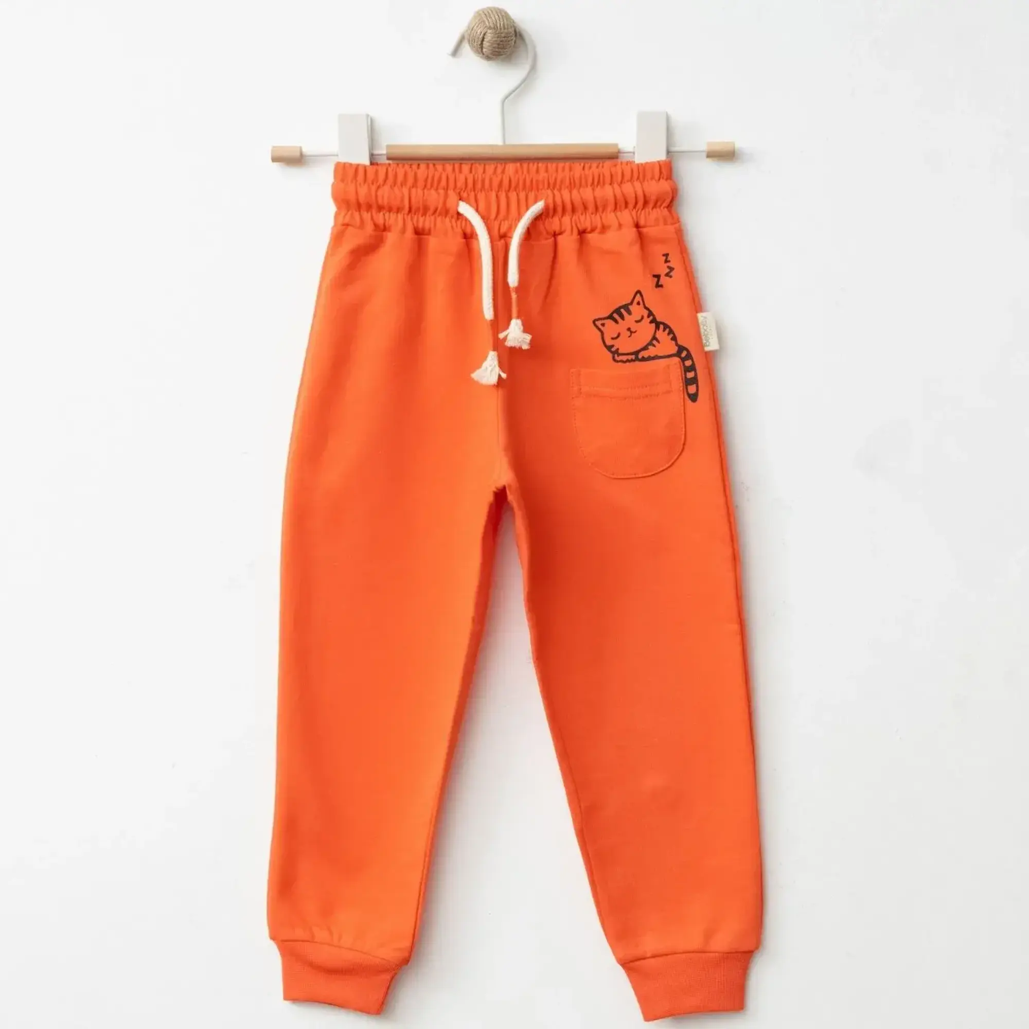 Bebolly Eşofman Altı Uykucu Kedi Baskılı Mercan