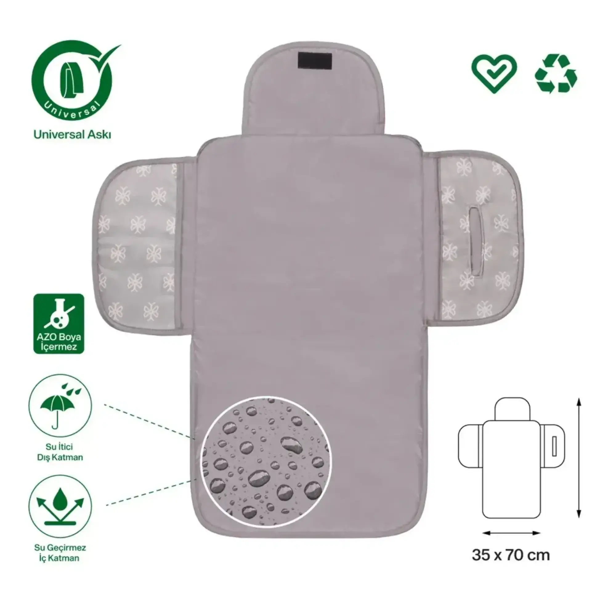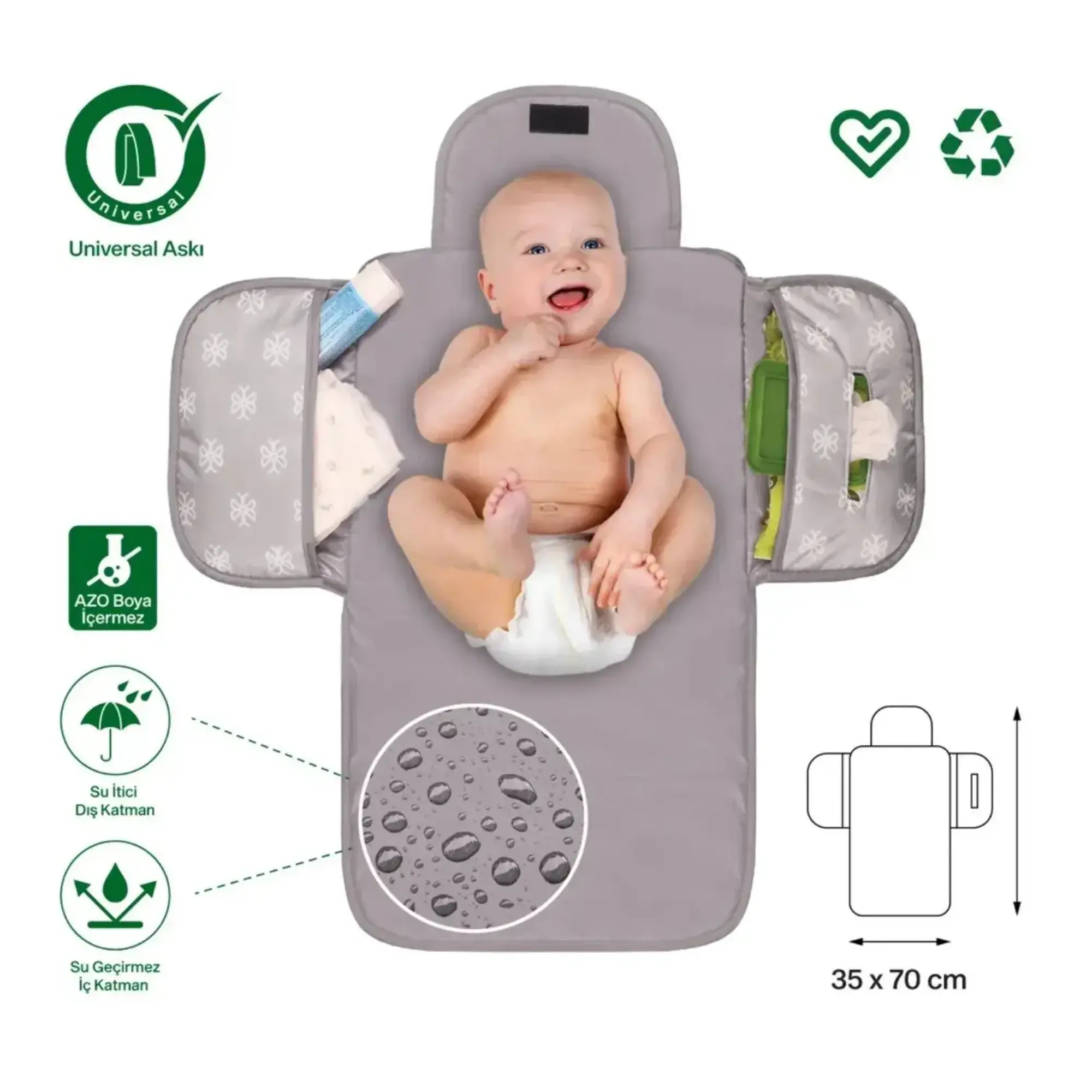 • İhtiyaç halinde hızlı ve pratik bir şekilde sererek bebeğin altını değiştirebilirsiniz.