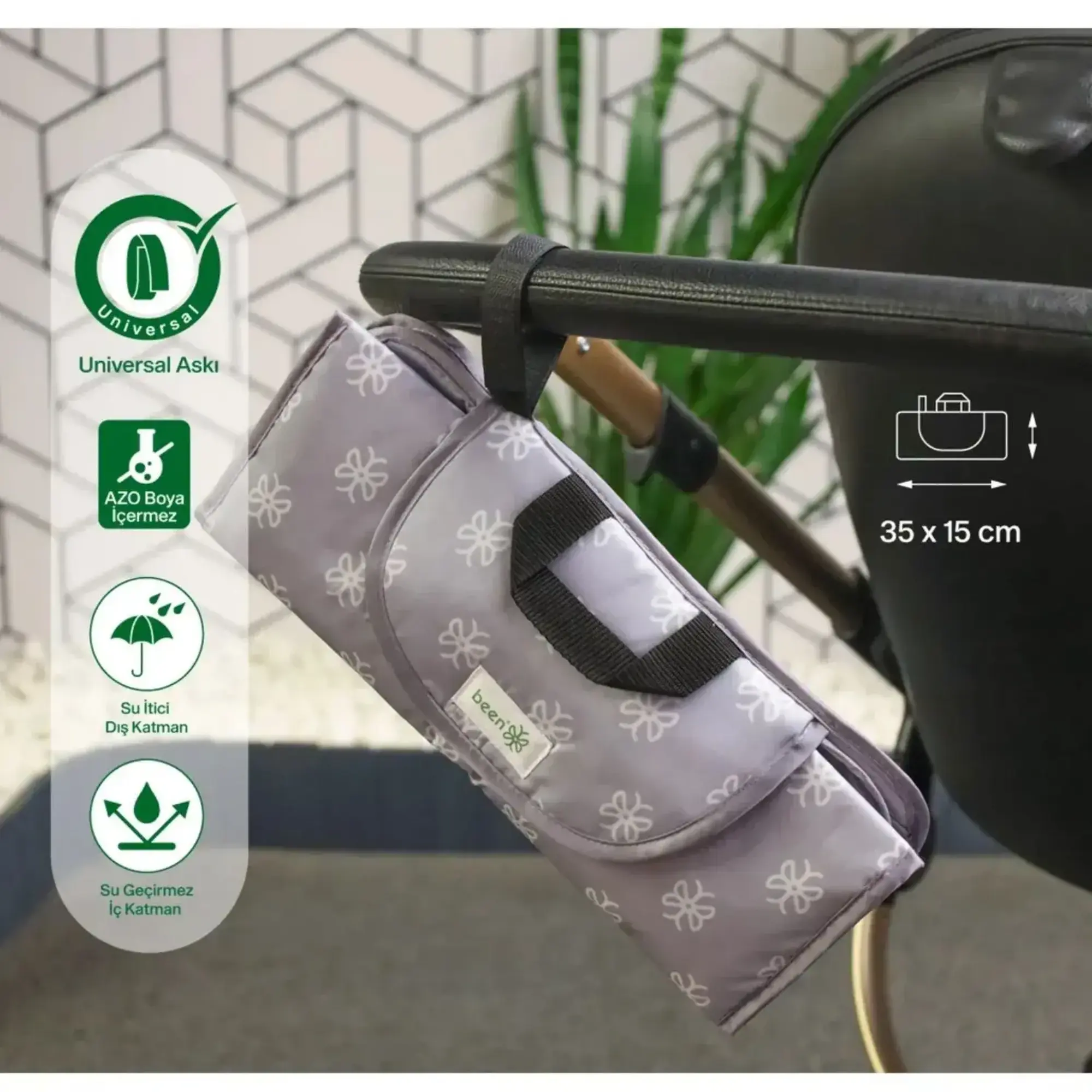 •Ayarlanabilir kemer sistemi sayesinde tüm bebek arabalarına ve çantaya kolayca asılabilir.