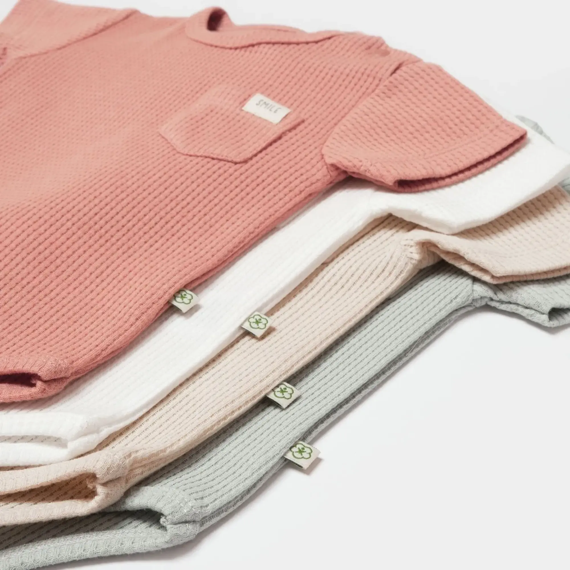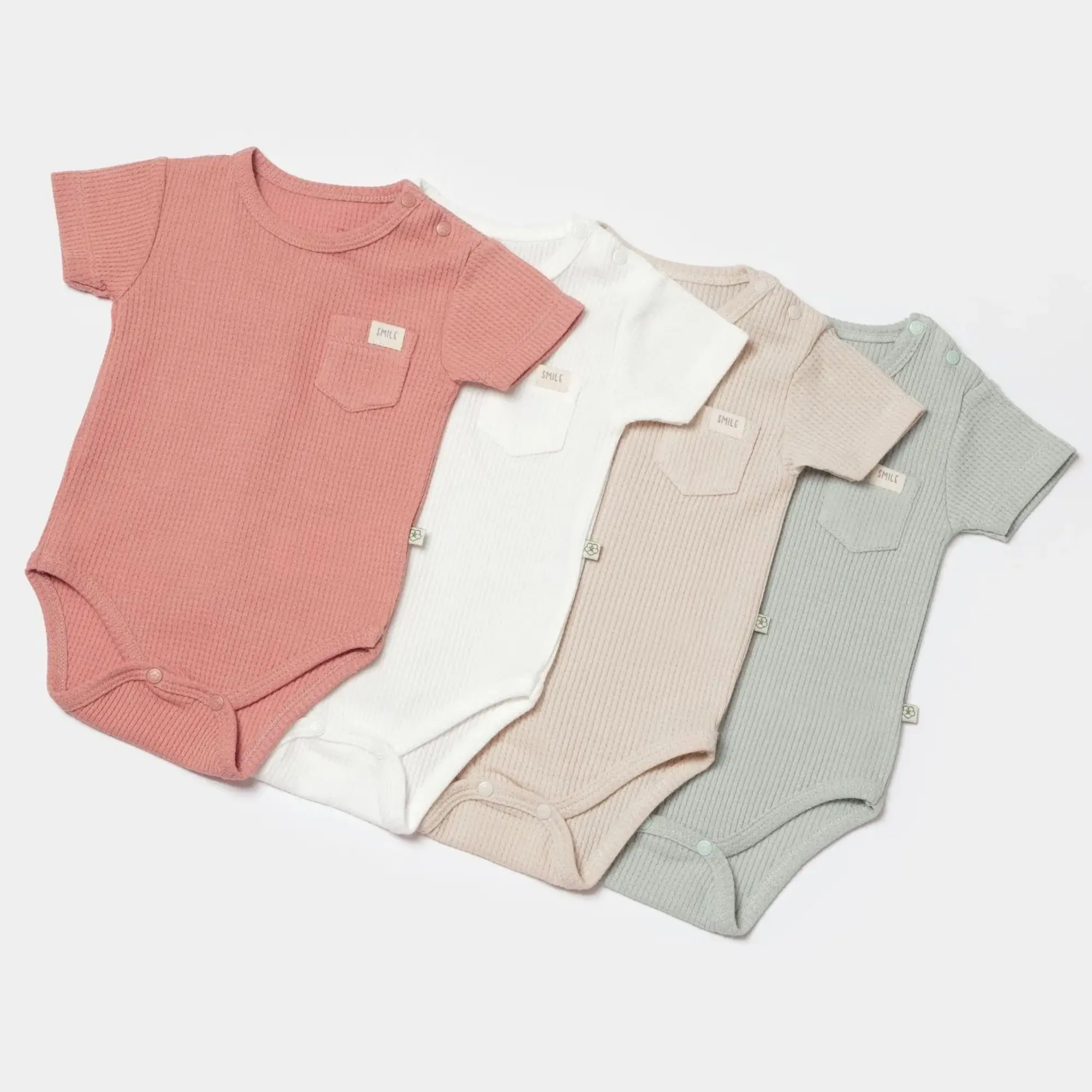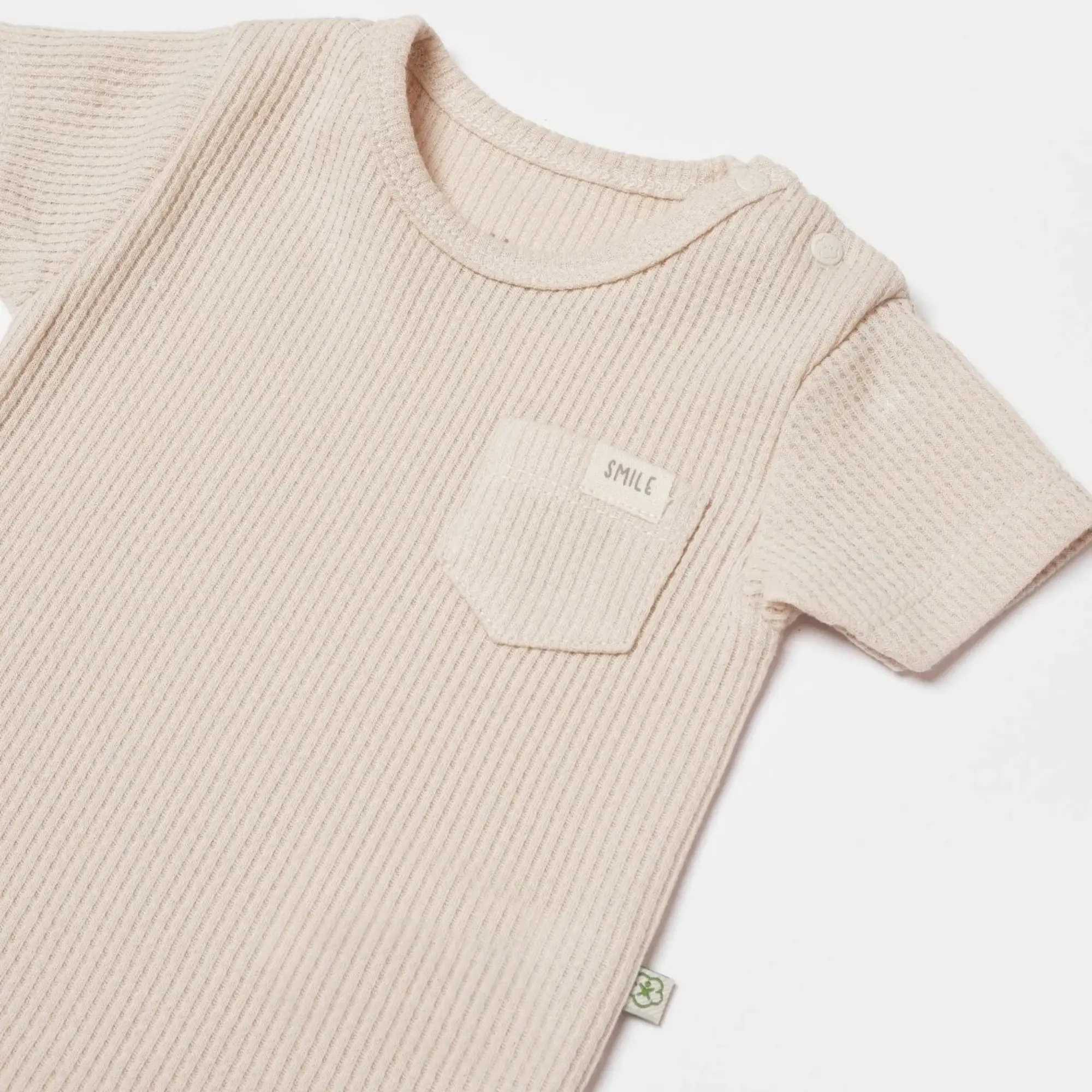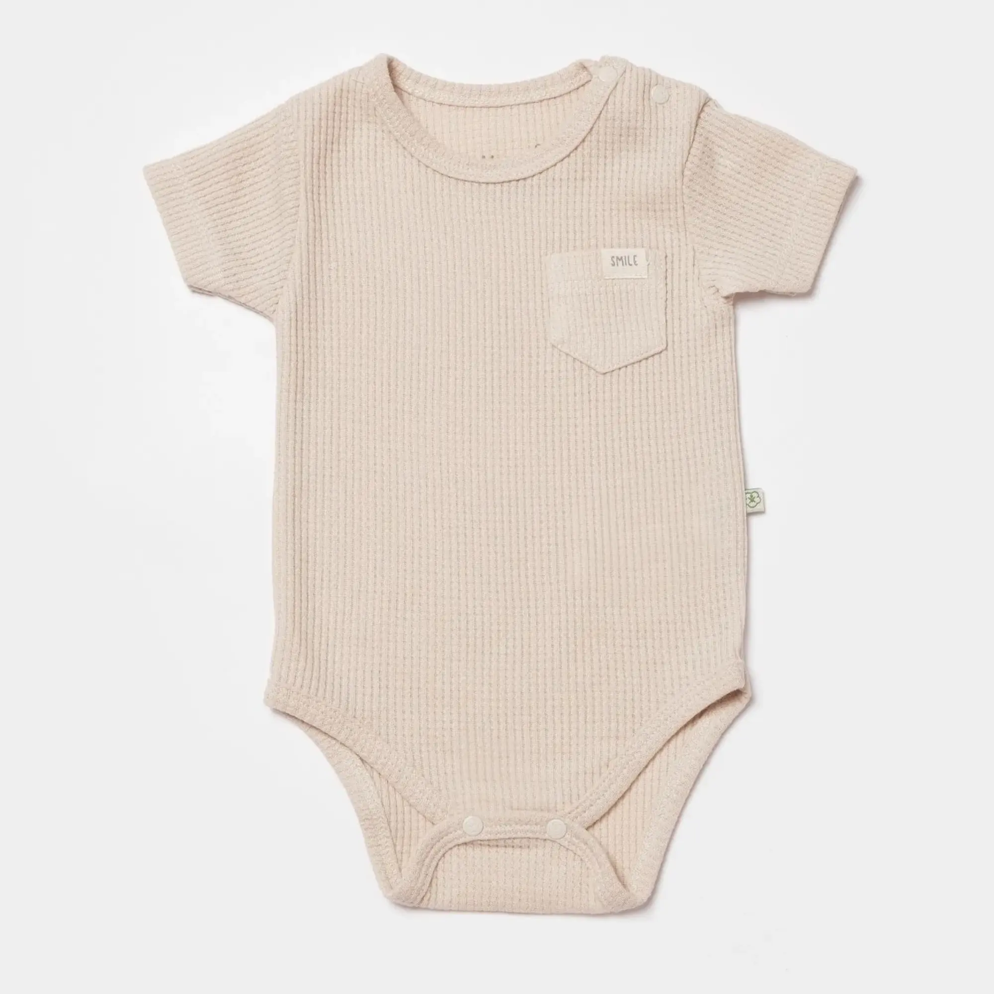 Bibaby Organik Body Kısa Kol Waffle Smile Bej