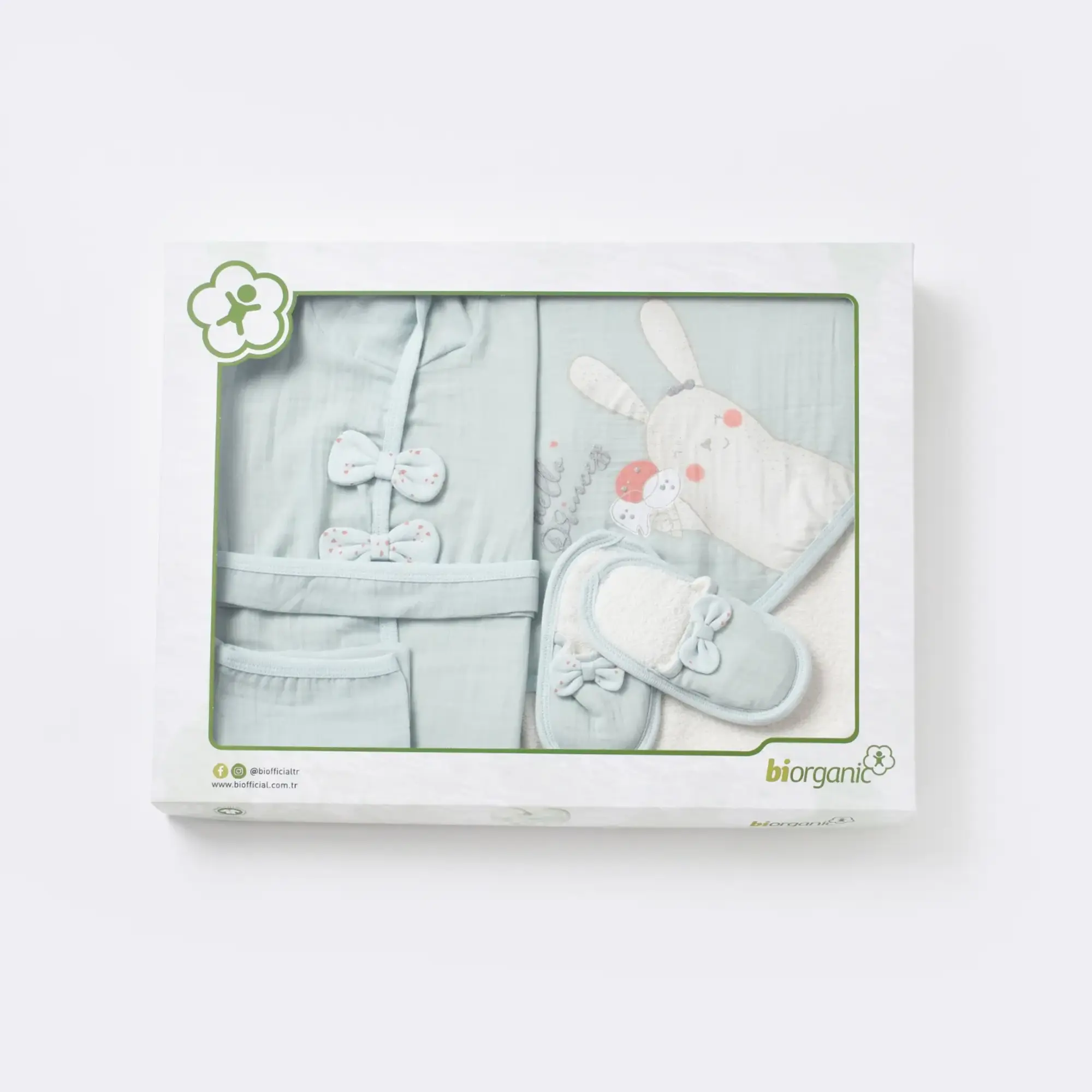Bibaby Organik Bornoz Takımı Pretty Ears Bunny Mint - Ekru