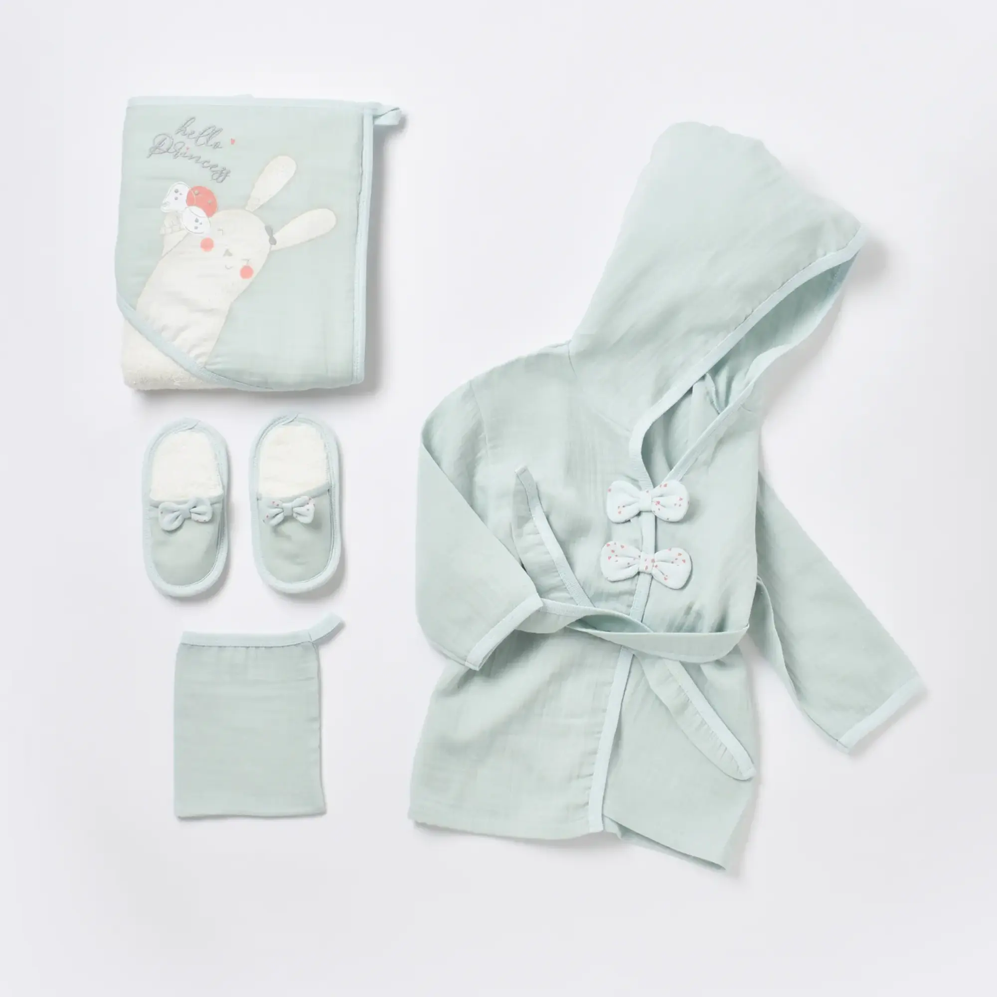 Bibaby Bornoz Takımı Pretty Ears Bunny Mint - Ekru