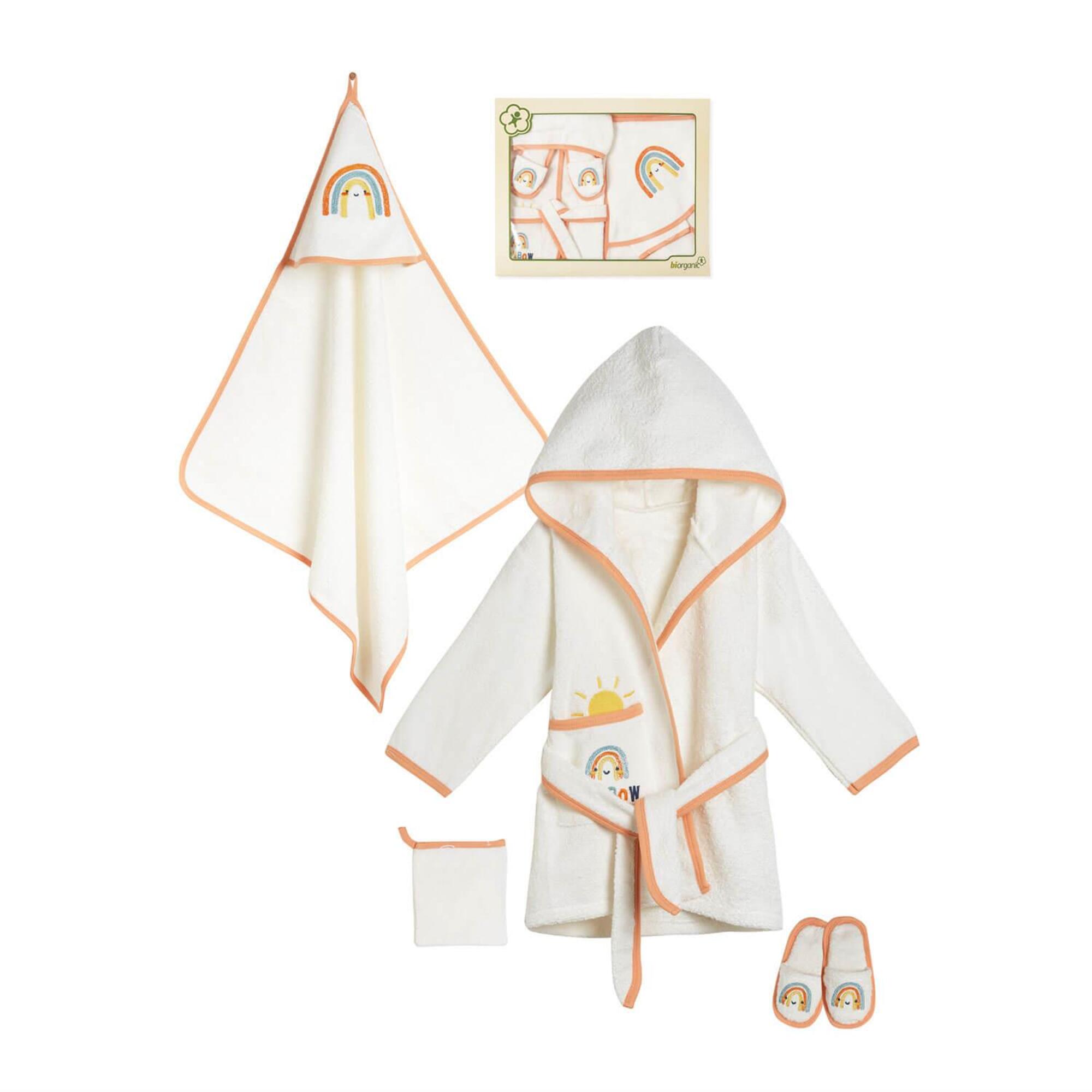 Bibaby Organik Havlu Takımı Happy Rainbow Somon - Ekru