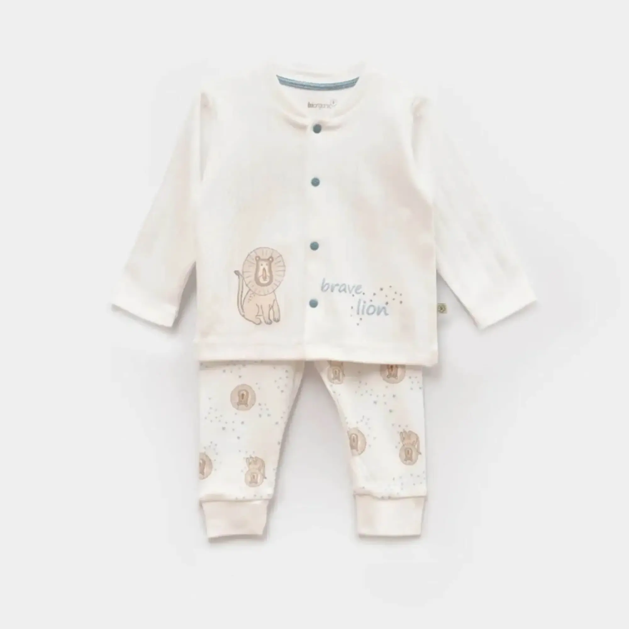 Bibaby Organik Pijama Takımı Brave Lion Ekru - Turkuaz