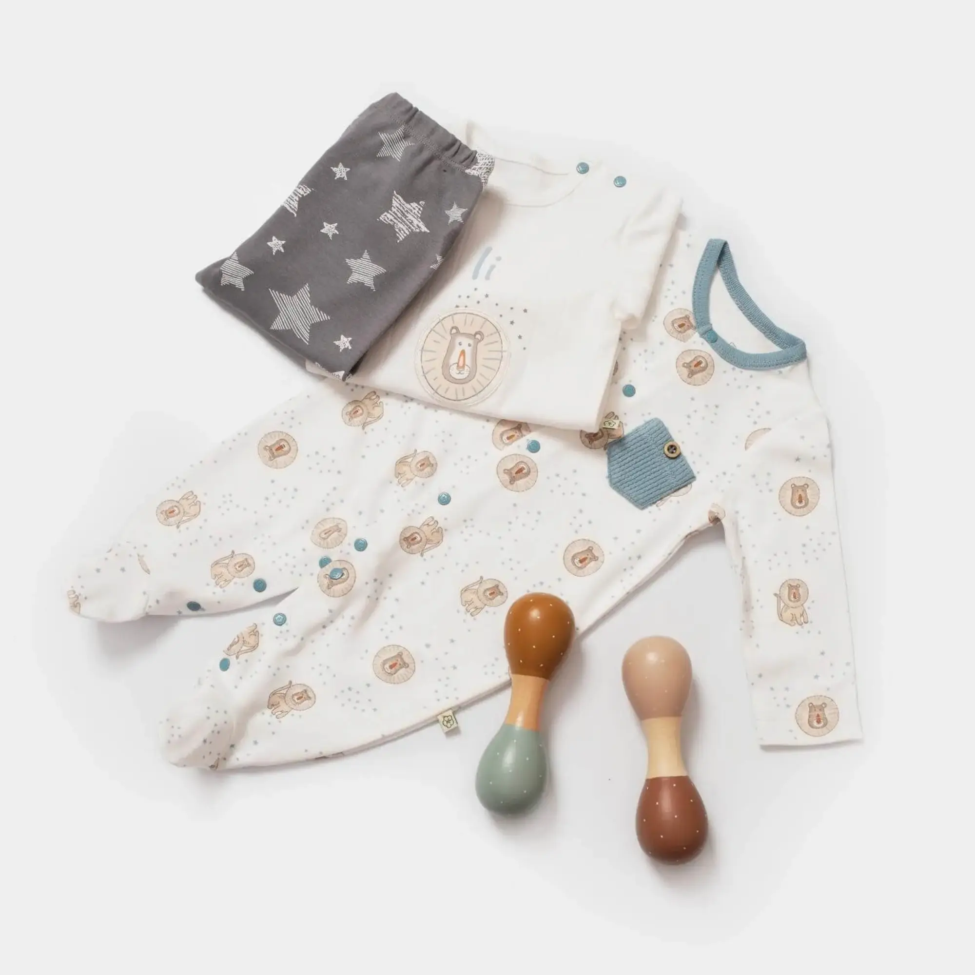Bibaby Organik Tulum Takımı Tüllü Brave Lion Ekru - Turkuaz