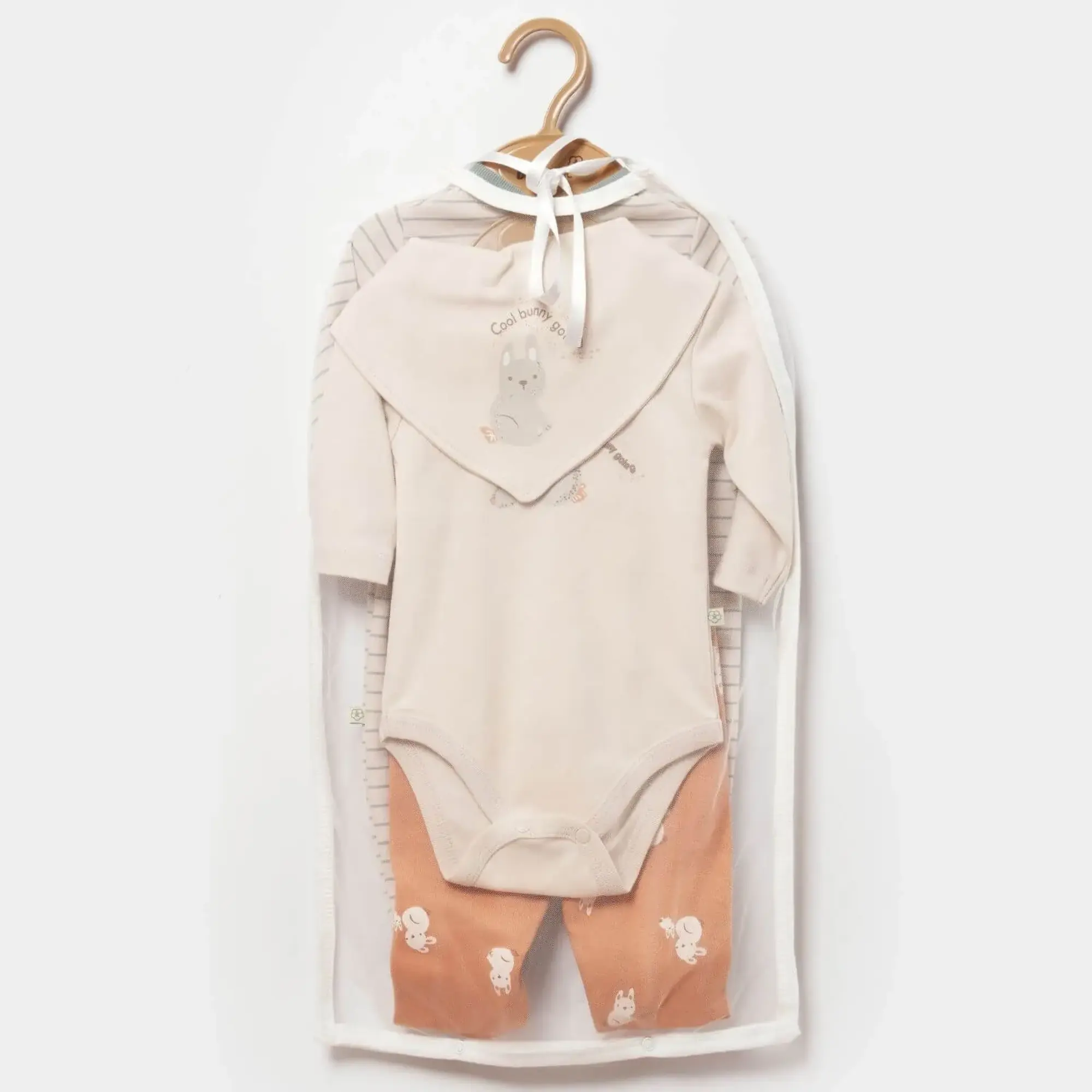 Bibaby Organik Tulum Takımı Tüllü Cool Lines Bunny Bej - Hardal
