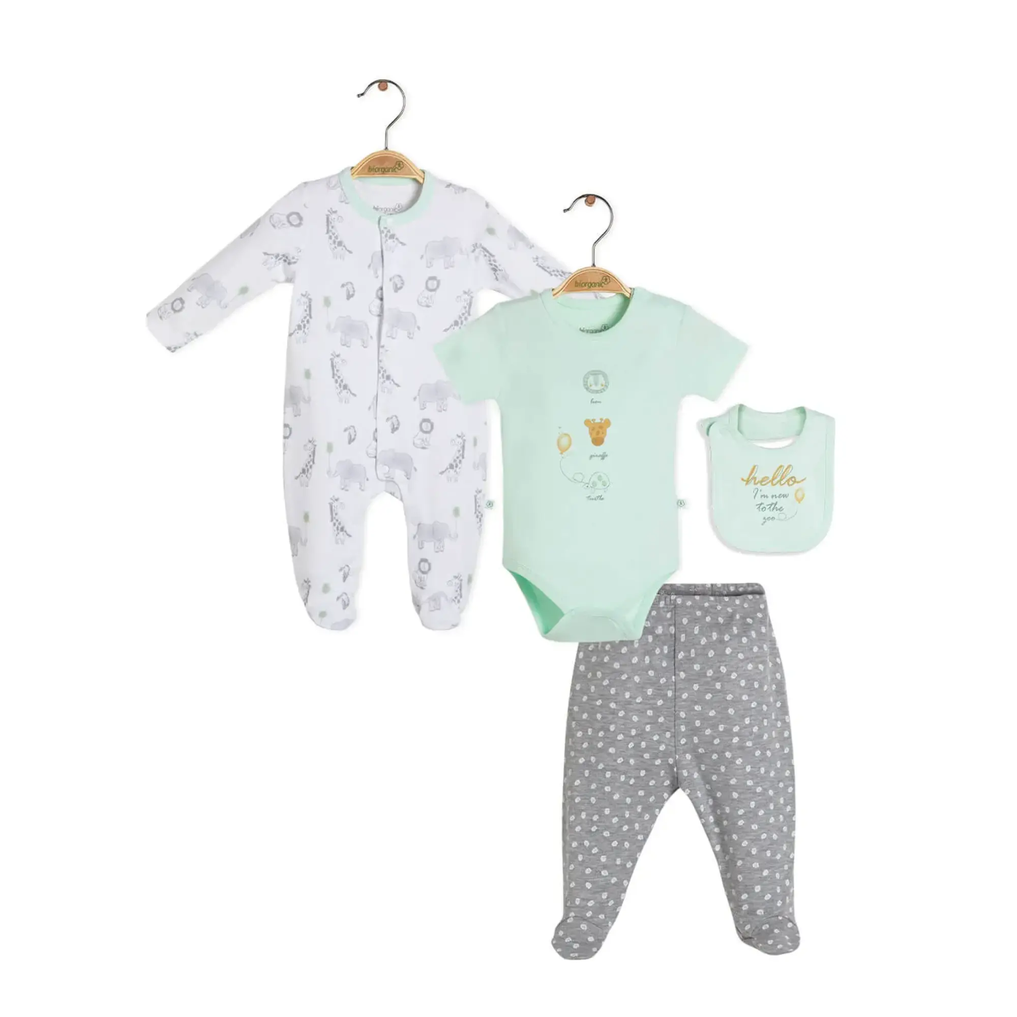 Bibaby Organik Tulum Takımı tüllü Organik Travel Zoo Yeşil - Gri