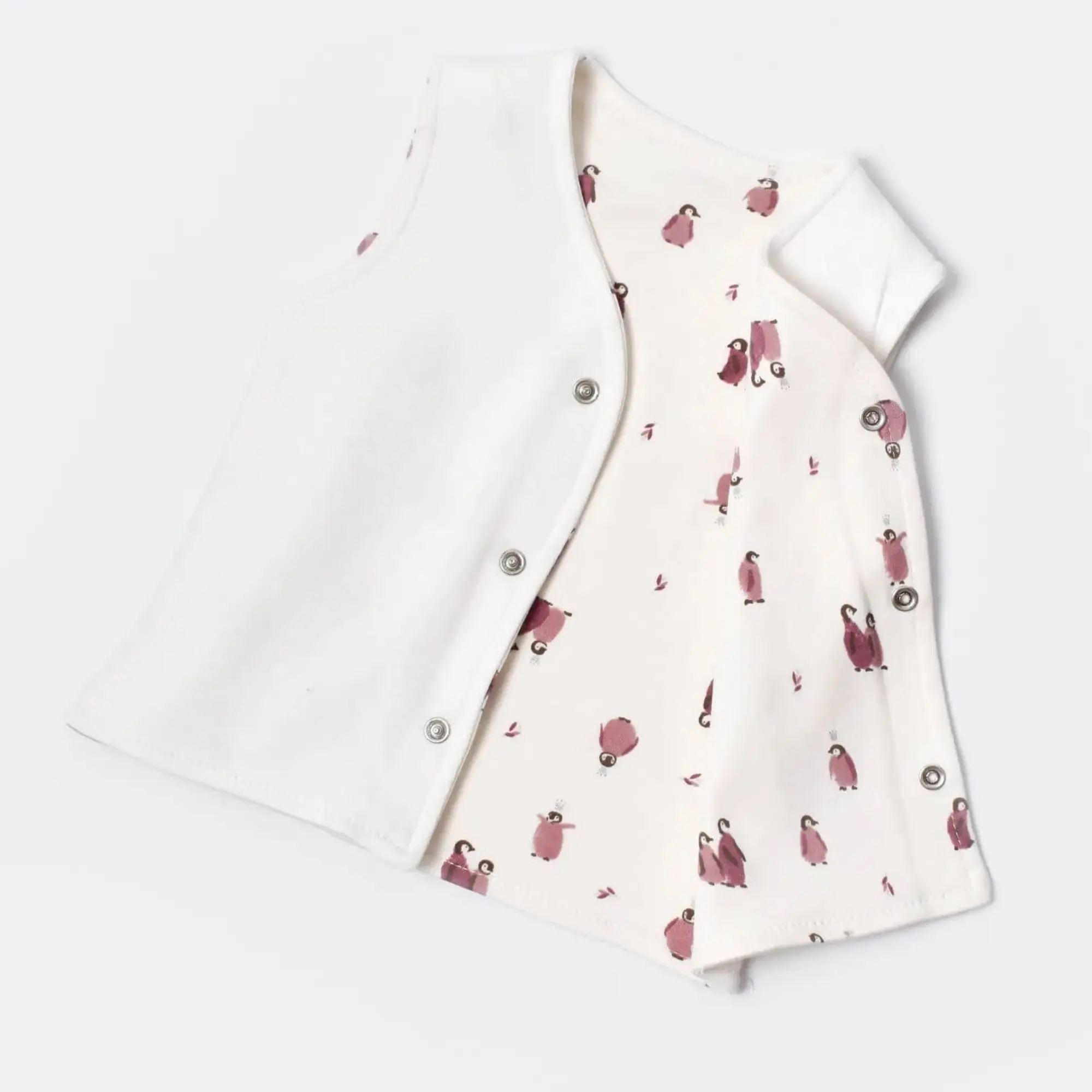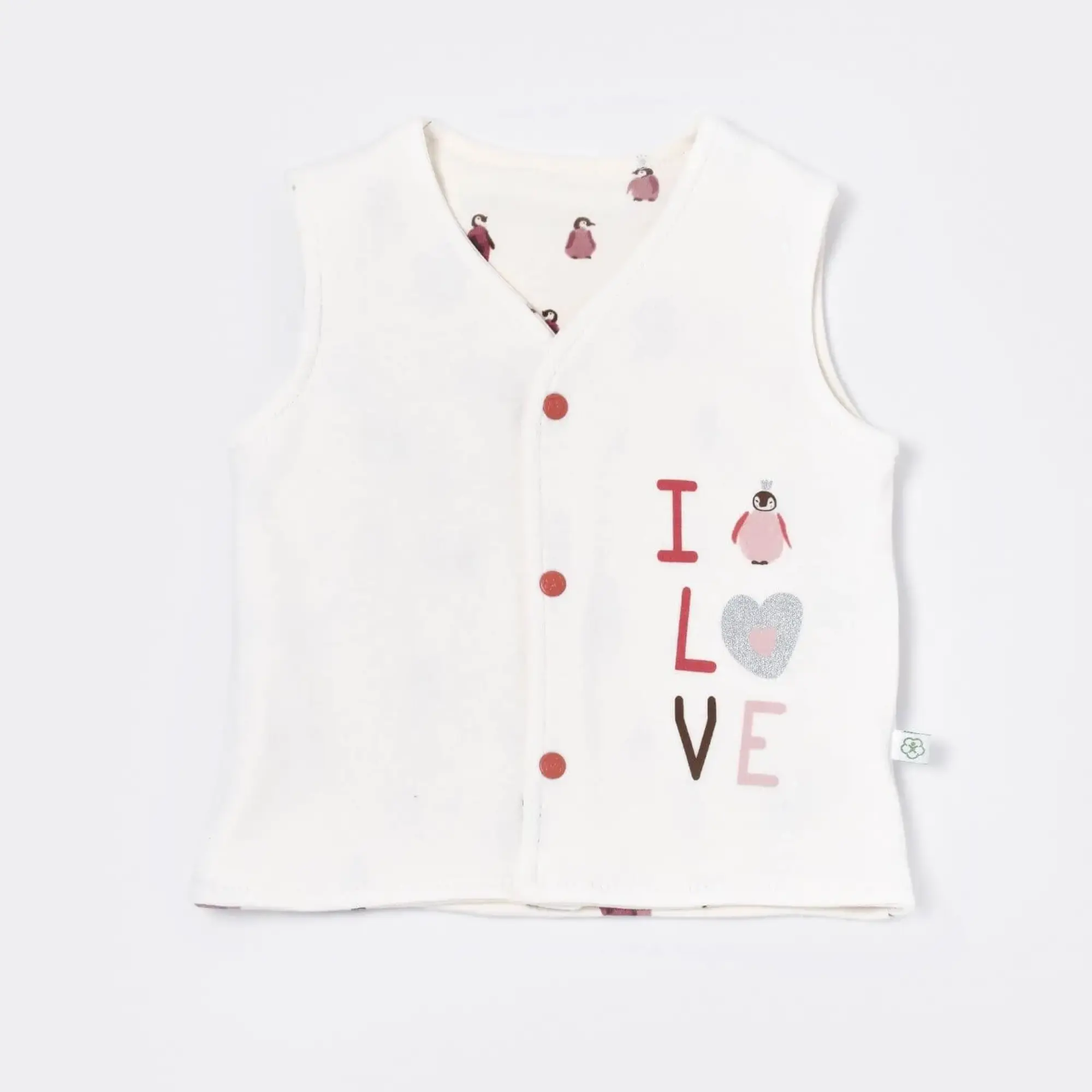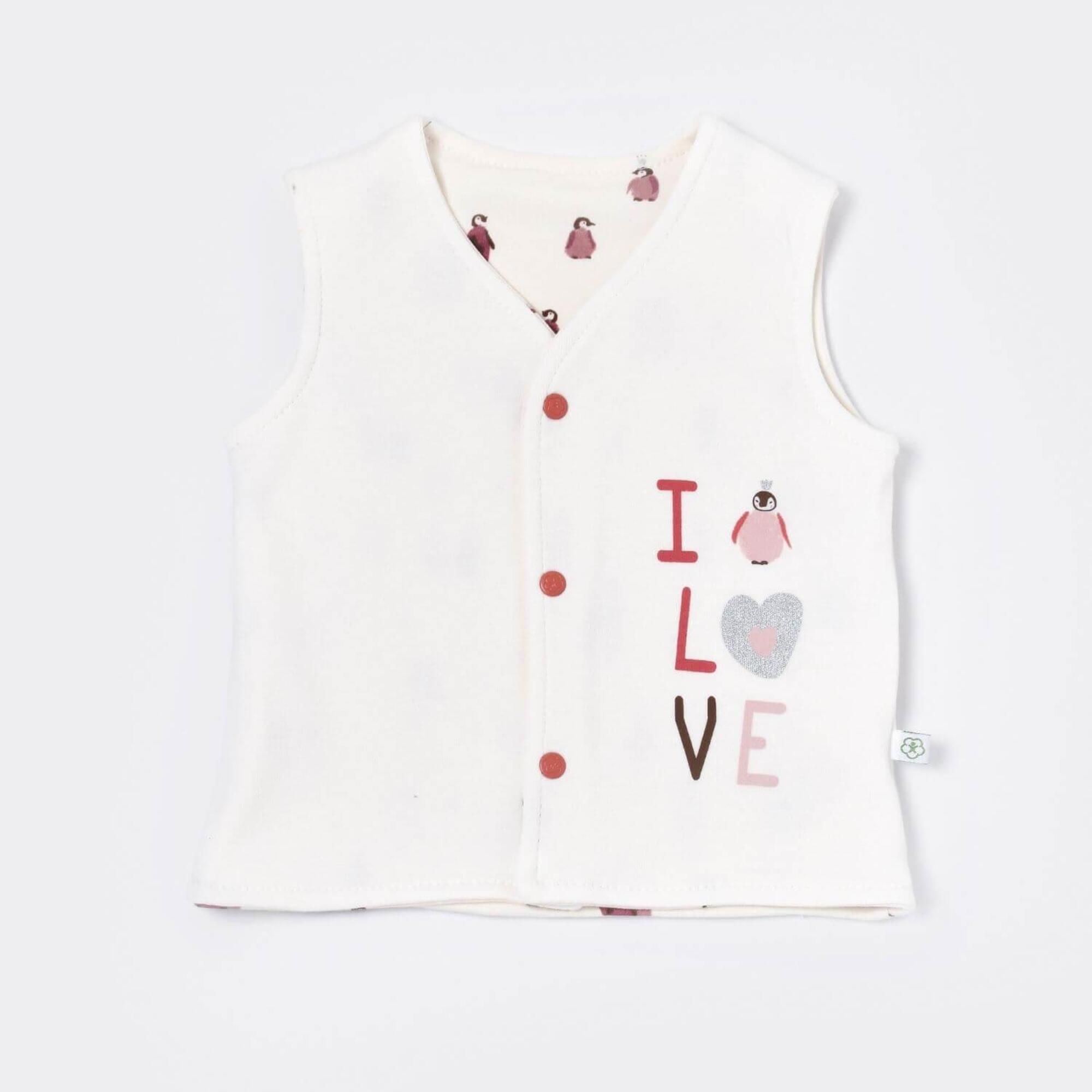 - Bebek yelek, pamuklu kumaştan üretilmiştir.