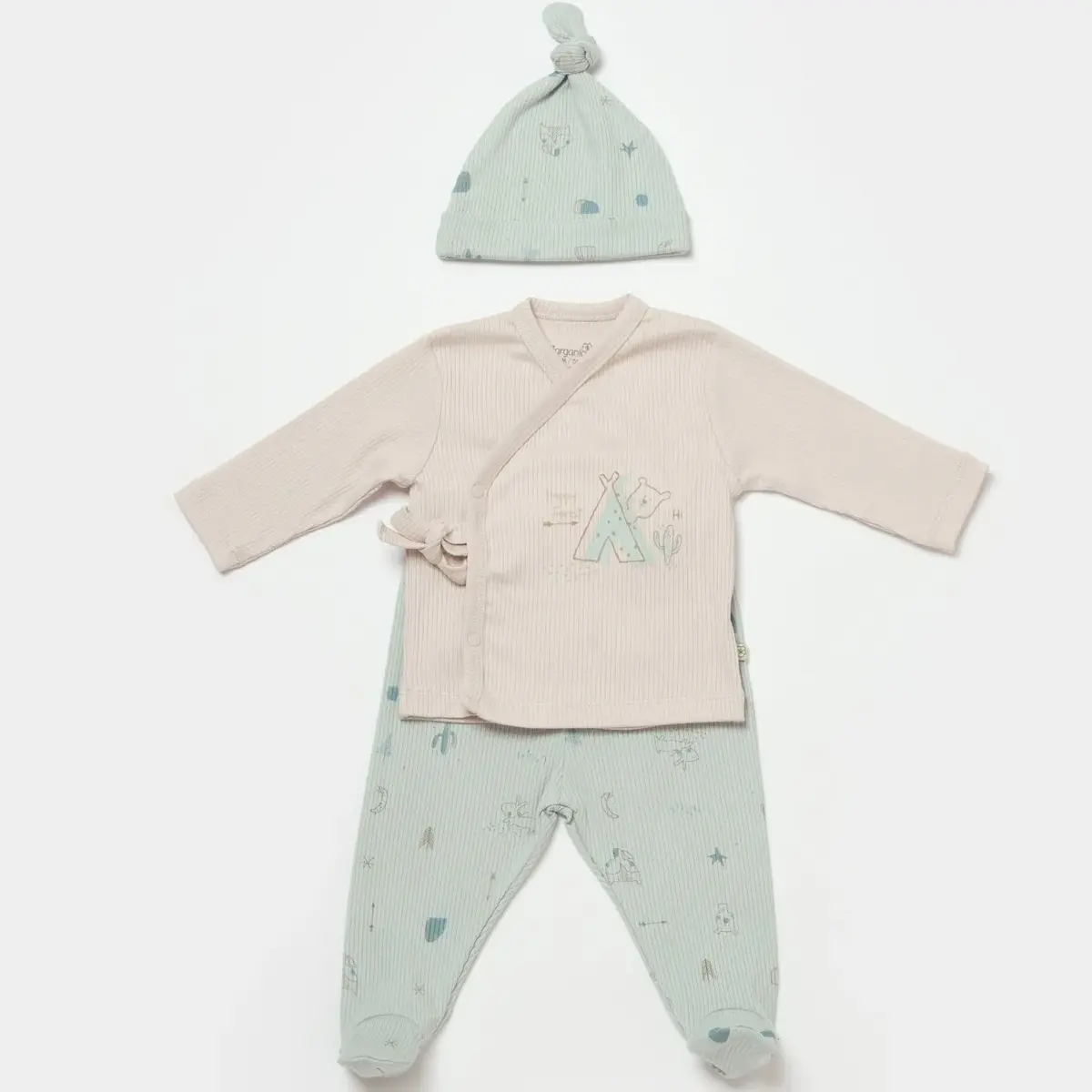 Bibaby Organik Zıbın Takımı 3lü Modal Happy Forest Bej - Mint