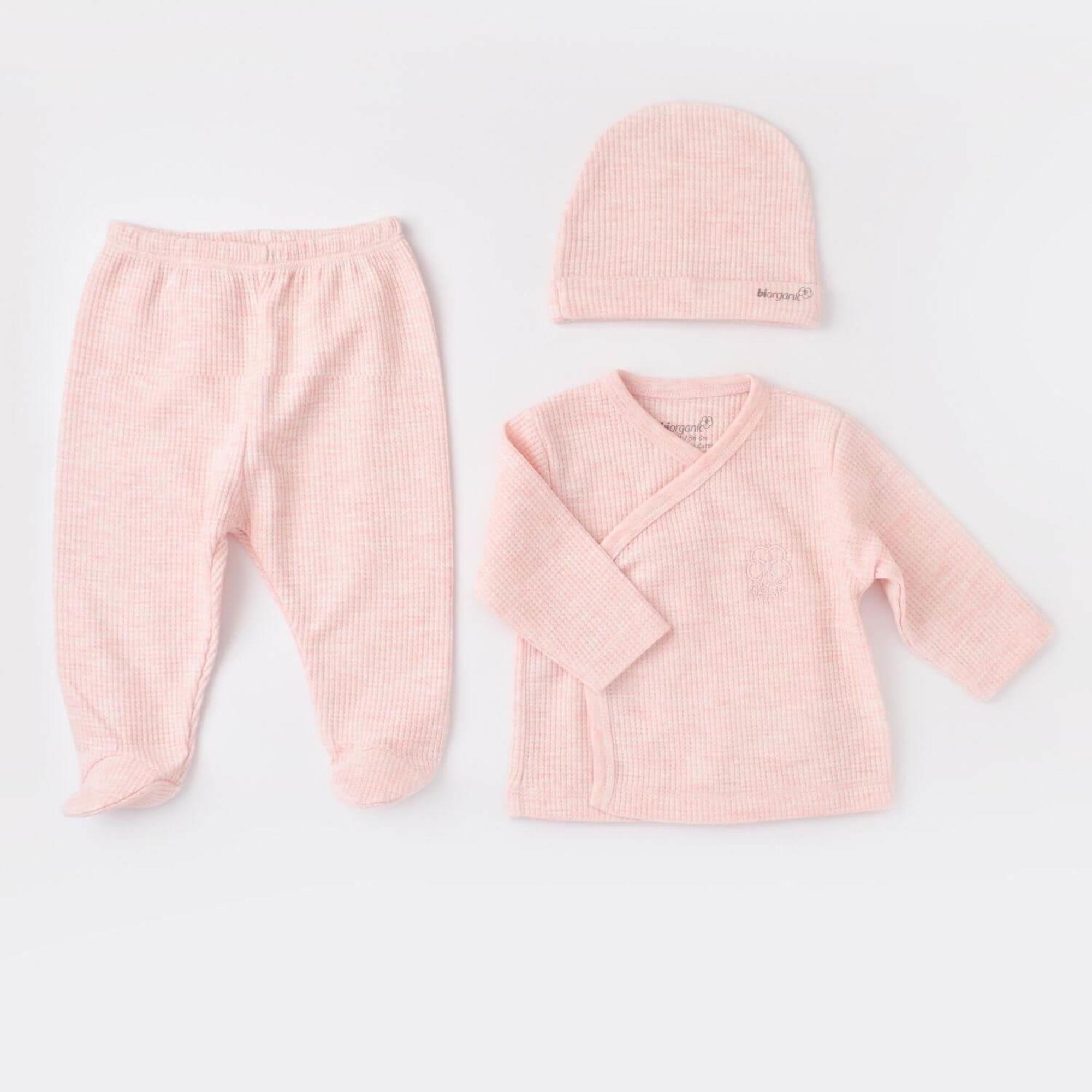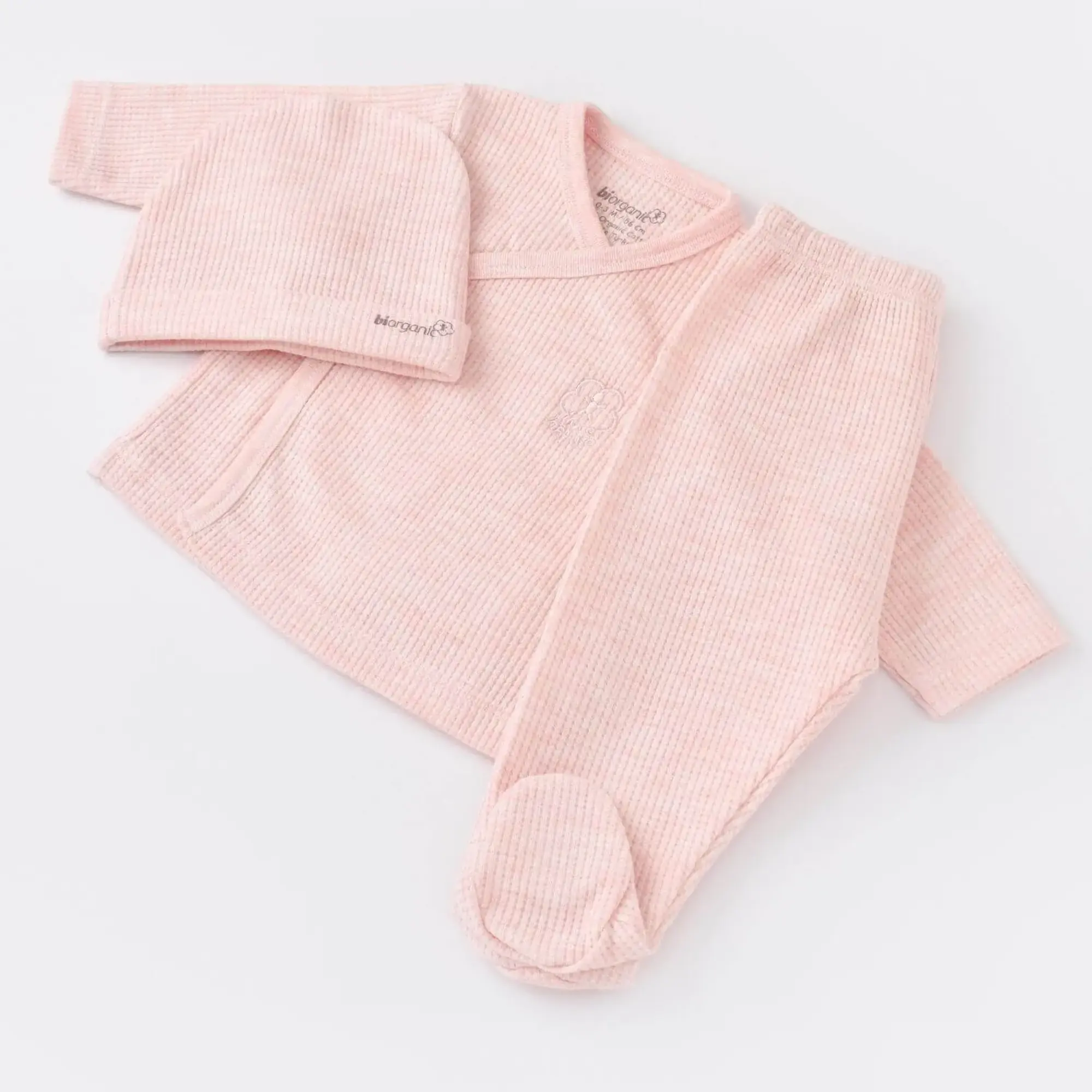 Bibaby Organik Zıbın Takımı 3lü Nature In Waffle Pembe Melanj