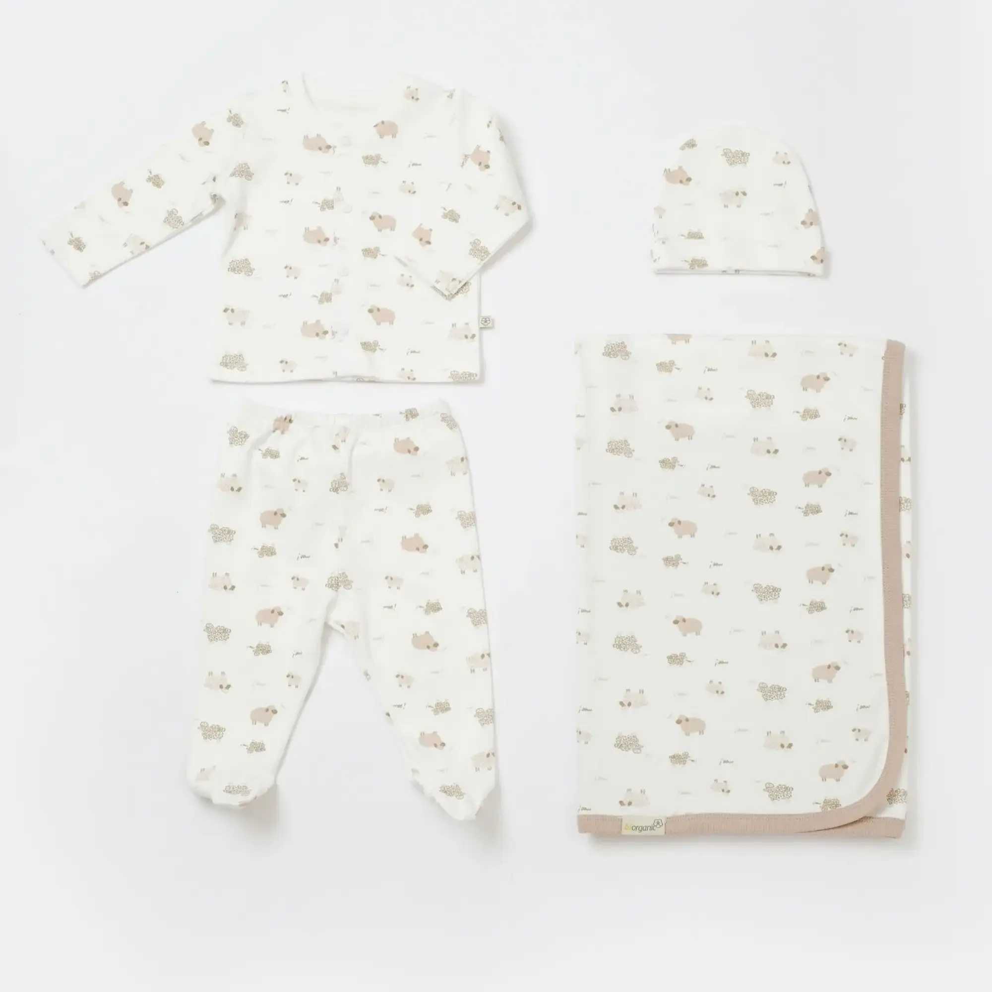 Bibaby Organik Zıbın Takımı Battaniyeli Tüllü Baby Sheep Ekru