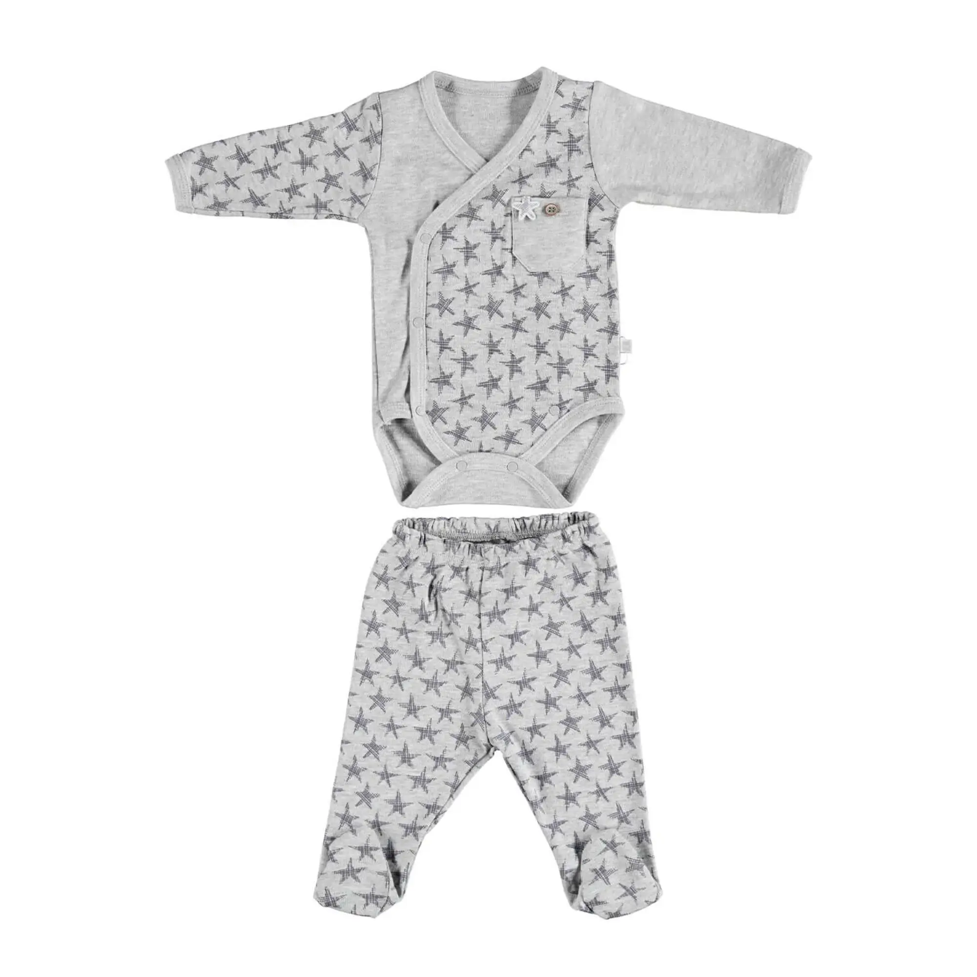 Bibaby Zıbın Takımı 2li Kruvaze New Dream Gri Melanj