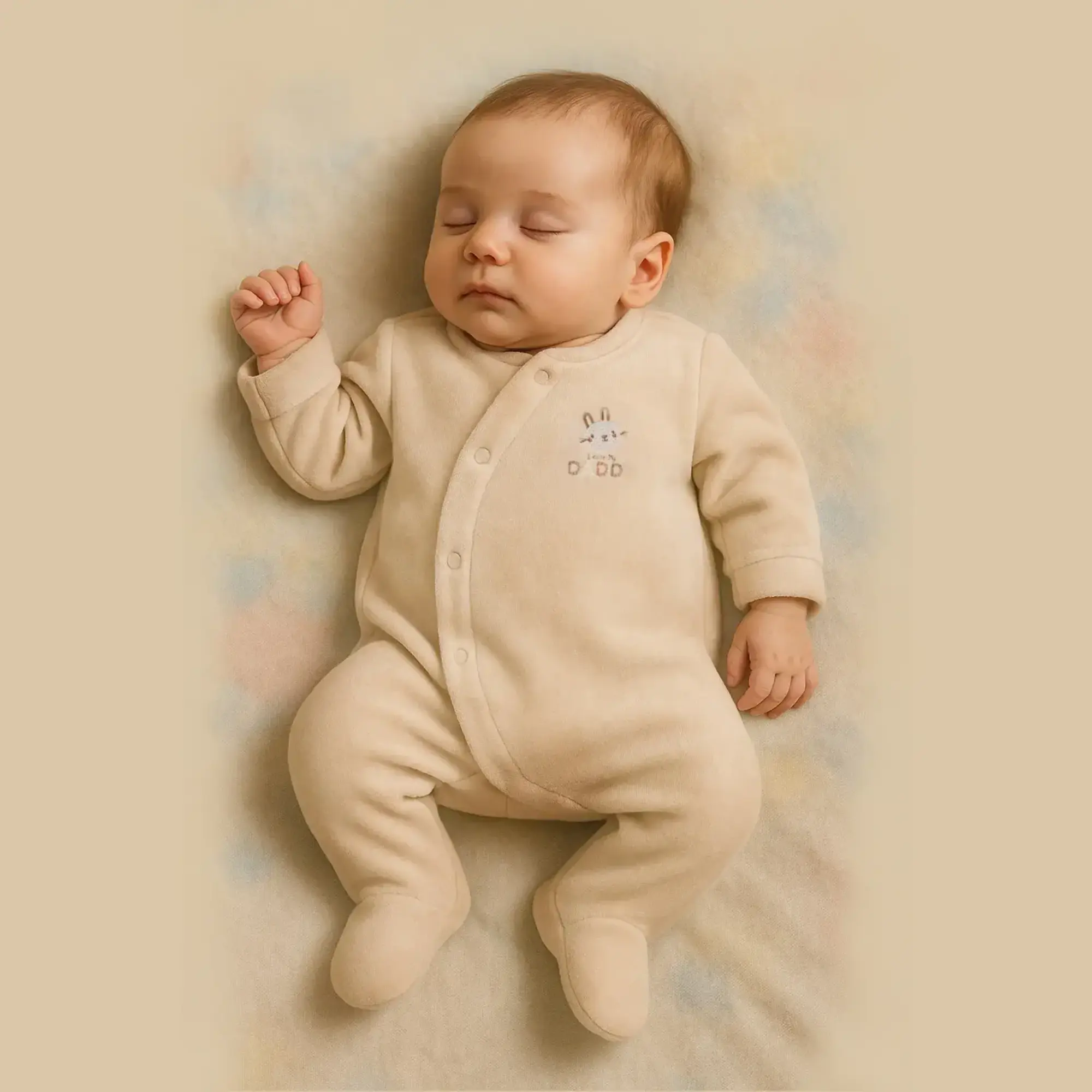 - Yeni doğan kadife patikli tulum, bisiklet yaka ve uzun kol tasarımıyla soğuk havalarda sıcak tutar.