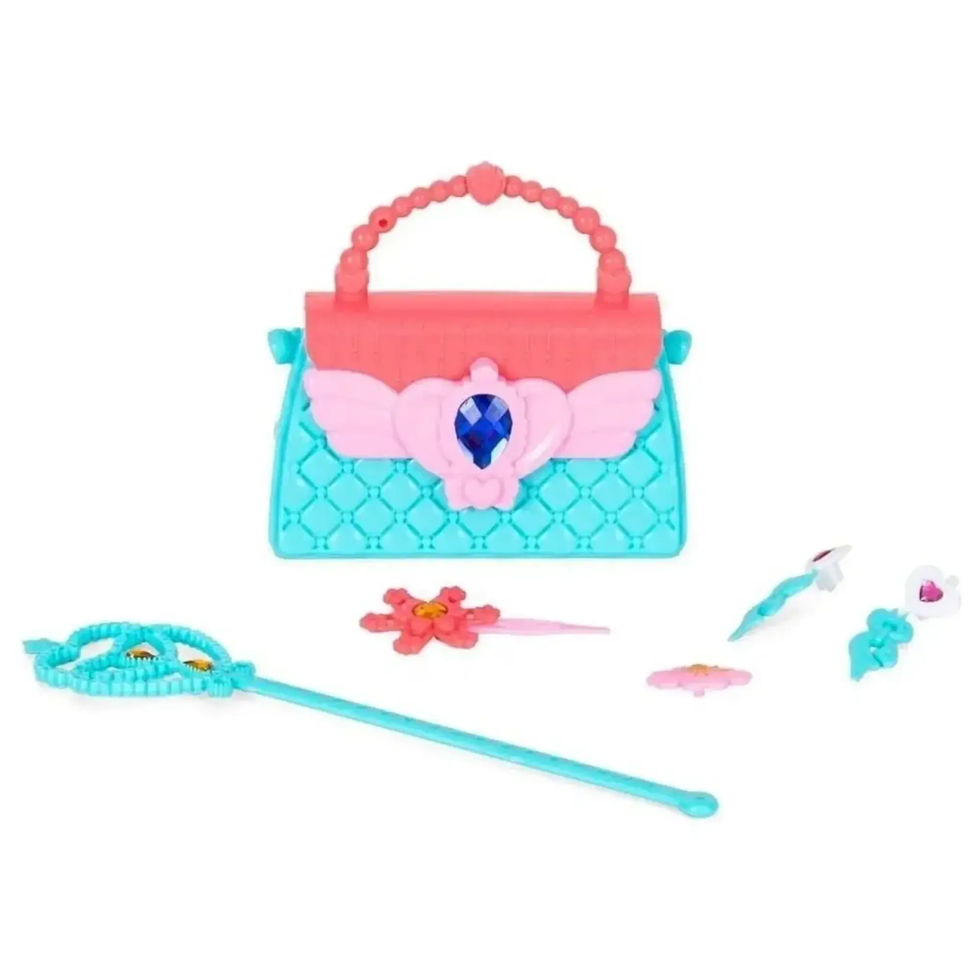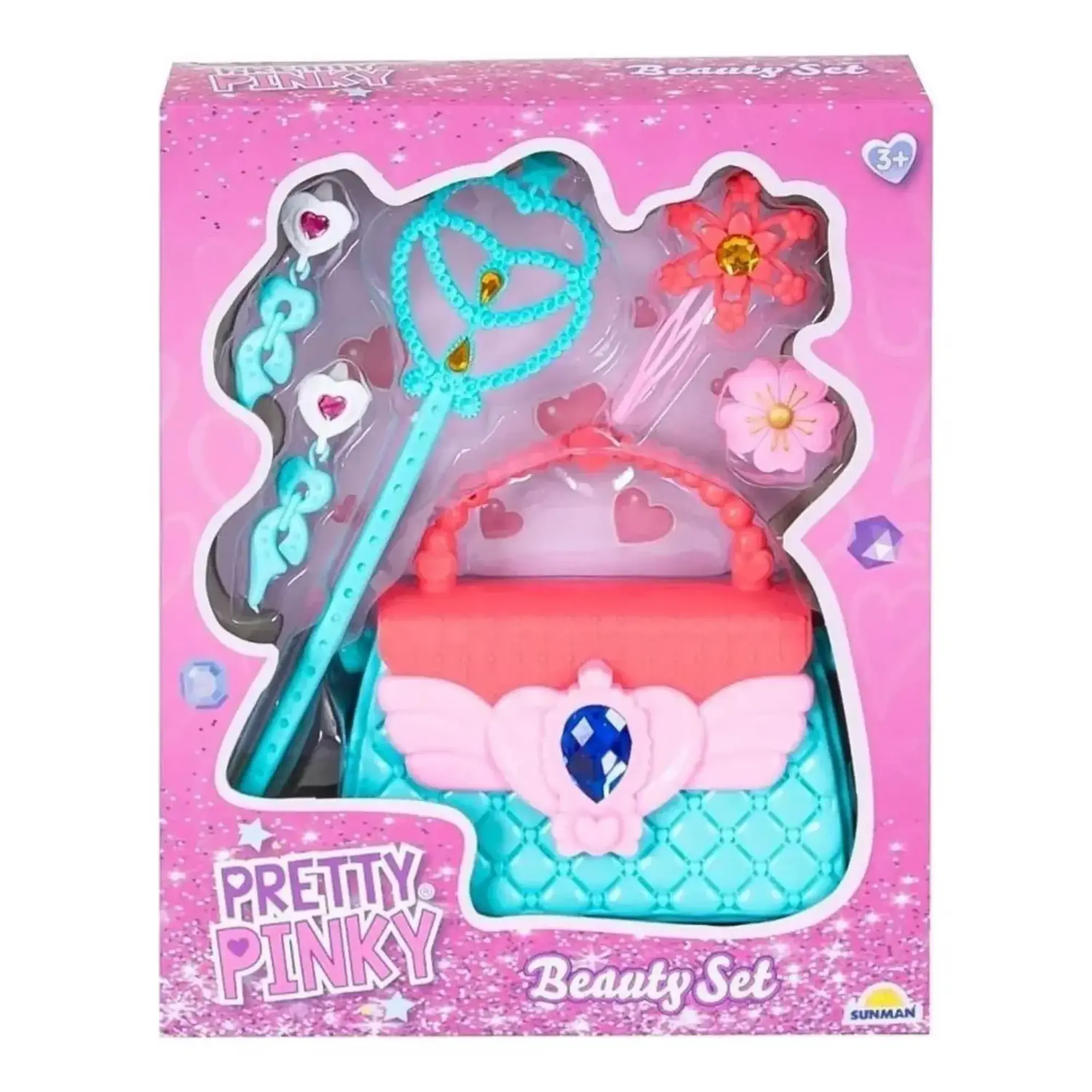 - Küçük prensesler için sevimli bir çanta, sihirli bir değnek ve diğer ışıltılı aksesuarları içeren Pretty Pinky setiyle zarafet ve çekicilik dolu maceralara hazır olun.