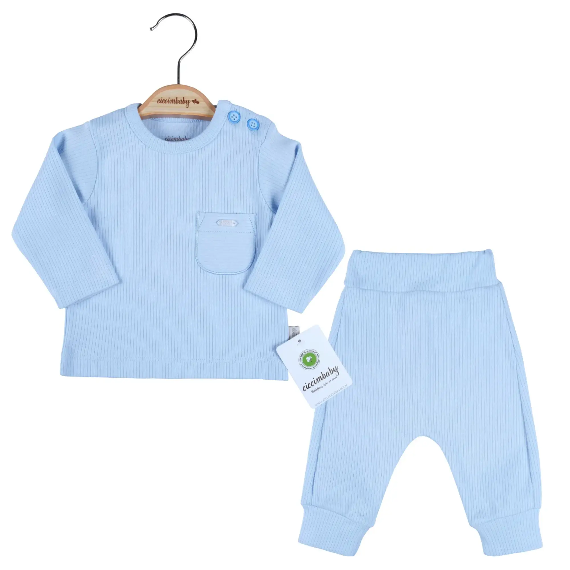 Ciccim Baby 2li Takım Cepli Ribanalı Mavi