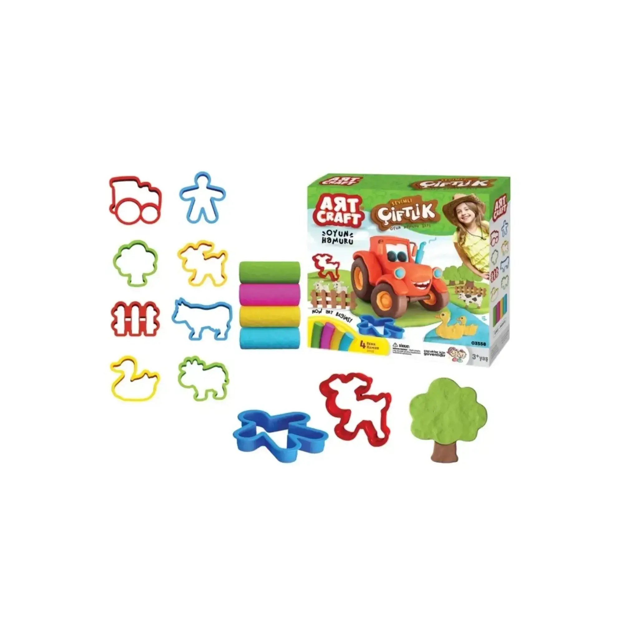 - Çiftlik temalı kalıplar içerir; çocuklar hayvan figürleri, ağaçlar ve diğer çiftlik unsurlarını kolayca şekillendirebilir.