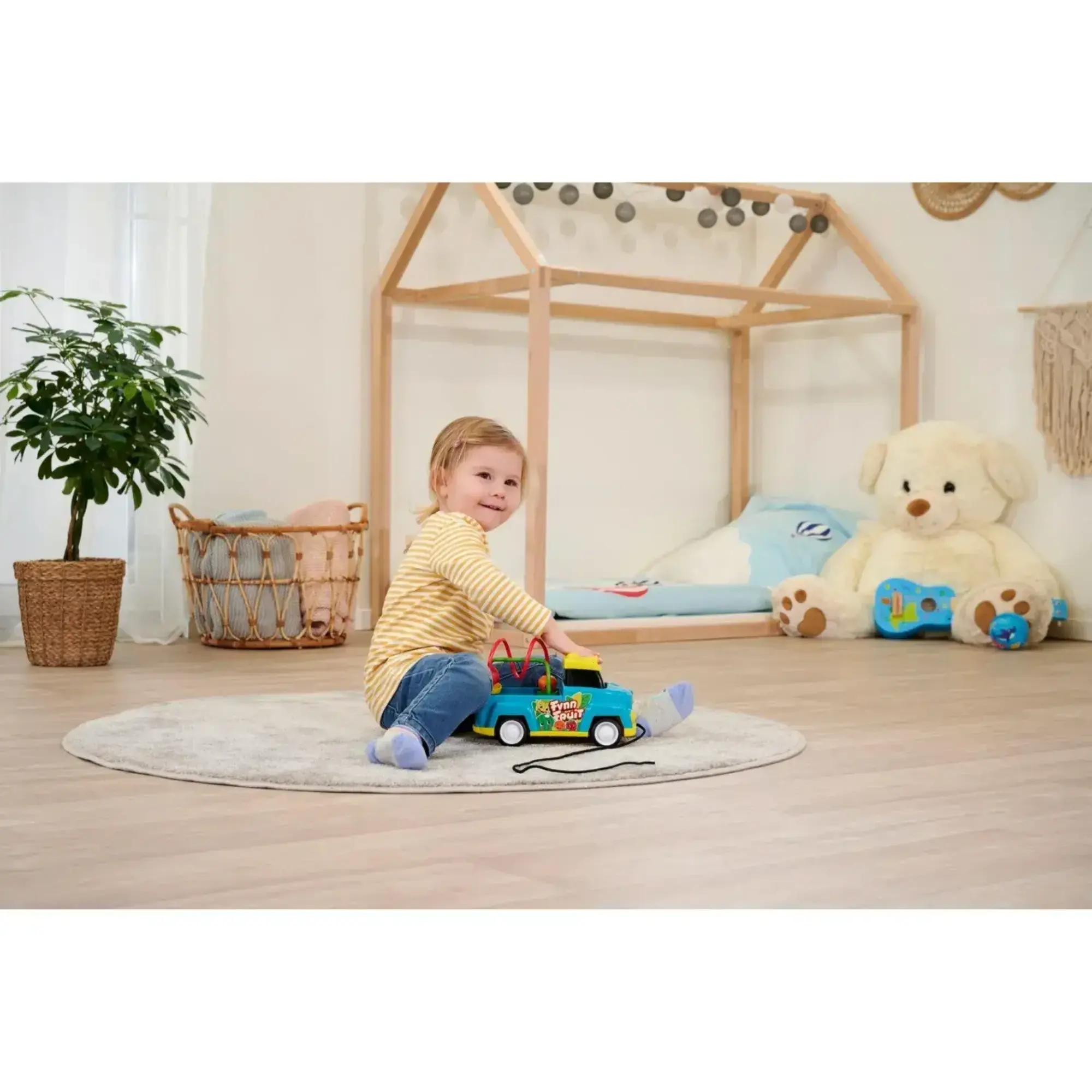 - Meyve nakliyecisi Fynn, küçük dünya kaşifleriyle birlikte çocuk odasında ilerliyor. Oturmak, emeklemek veya yürümek olsun: Özenle tasarlanmış oyuncak araba, bağlı iple kolayca tutulabilir veya çekilebilir.