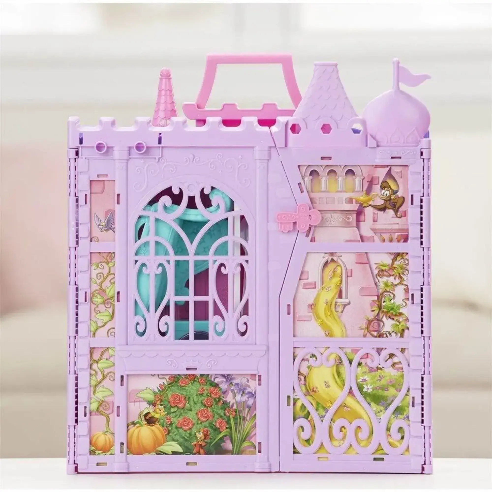 - Açıldığında boyu yaklaşık 60 cm, eni 84 cm olan saray; hem eğlenceli bir oyun seti, hem kullanışlı bir saklama alanı hem de taşıma çantası olarak kullanılabiliyor.