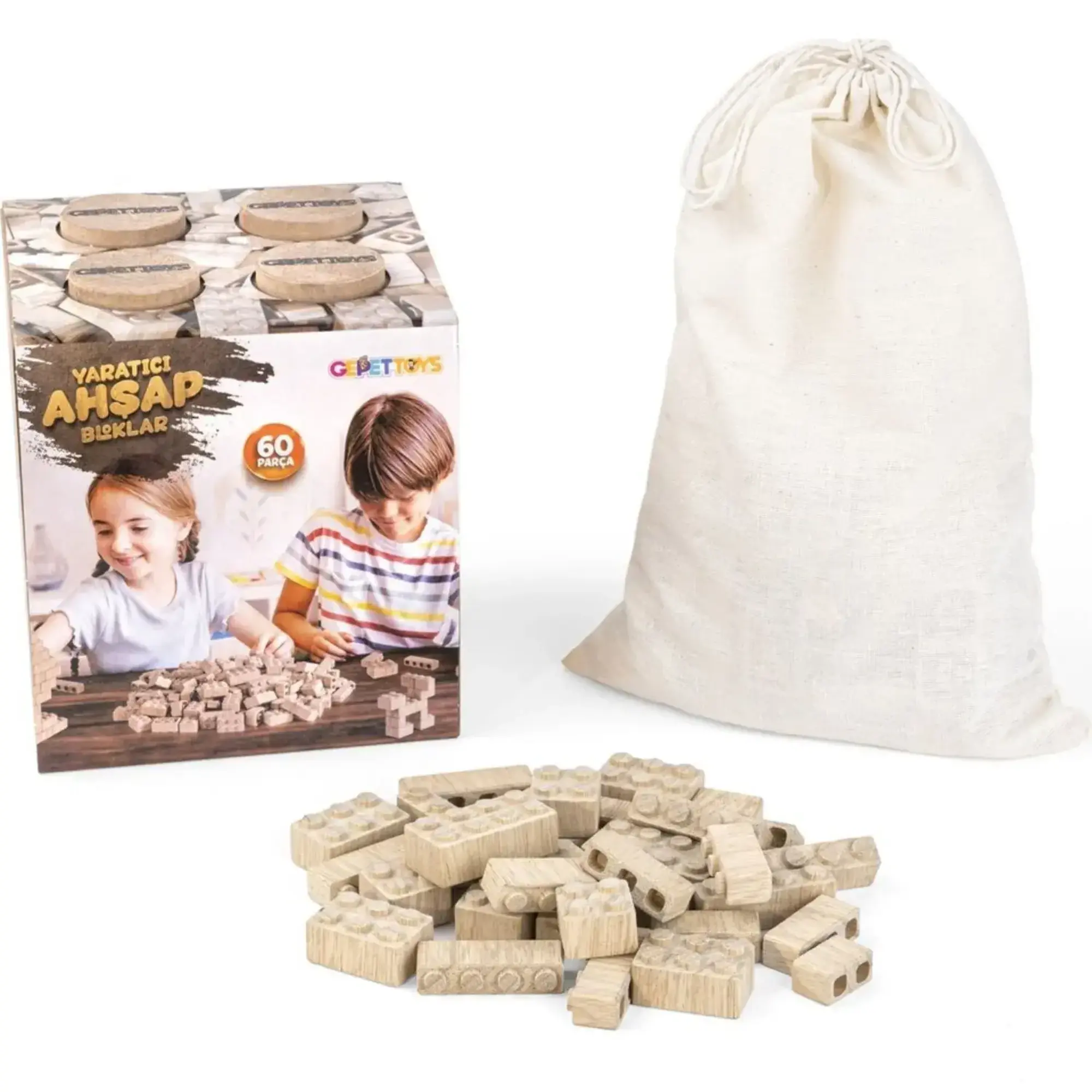 - Çocuklar bu doğal ahşap yapı blokları ile, el becerilerini geliştirir, problem çözme yeteneği kazanır.