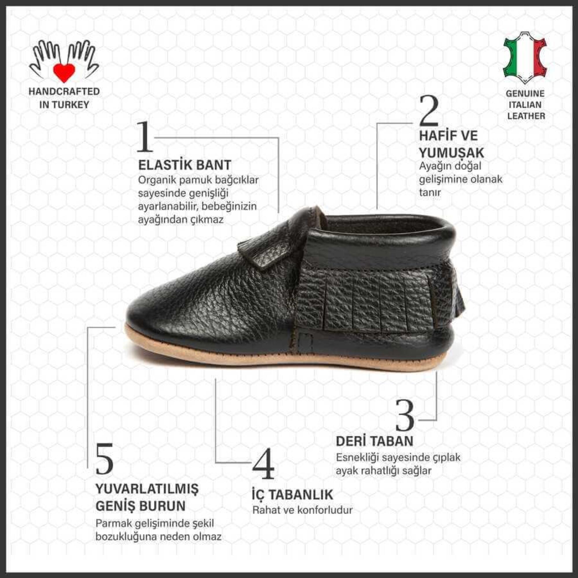 - Tüm bebek ayakkabı modellerimiz minik kızınızın / oğlunuzun ayak sağlığından ödün vermeden şıklığını tamamlaması için sadece özel olarak gerçek deriden, ve doğal malzeme görüntüleme en usta ellerde ve gururla TURKIYE'de üretilmektedir.