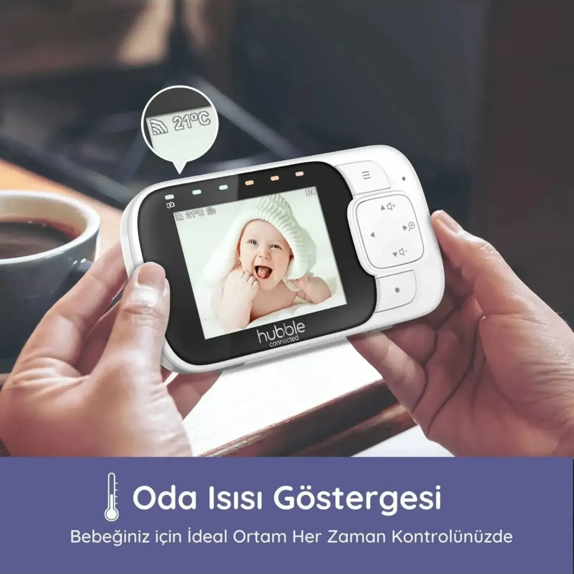 - Oda sıcaklığı göstergesi bebeğiniz için ideal ortamı sağlamanıza yardımcı olur.