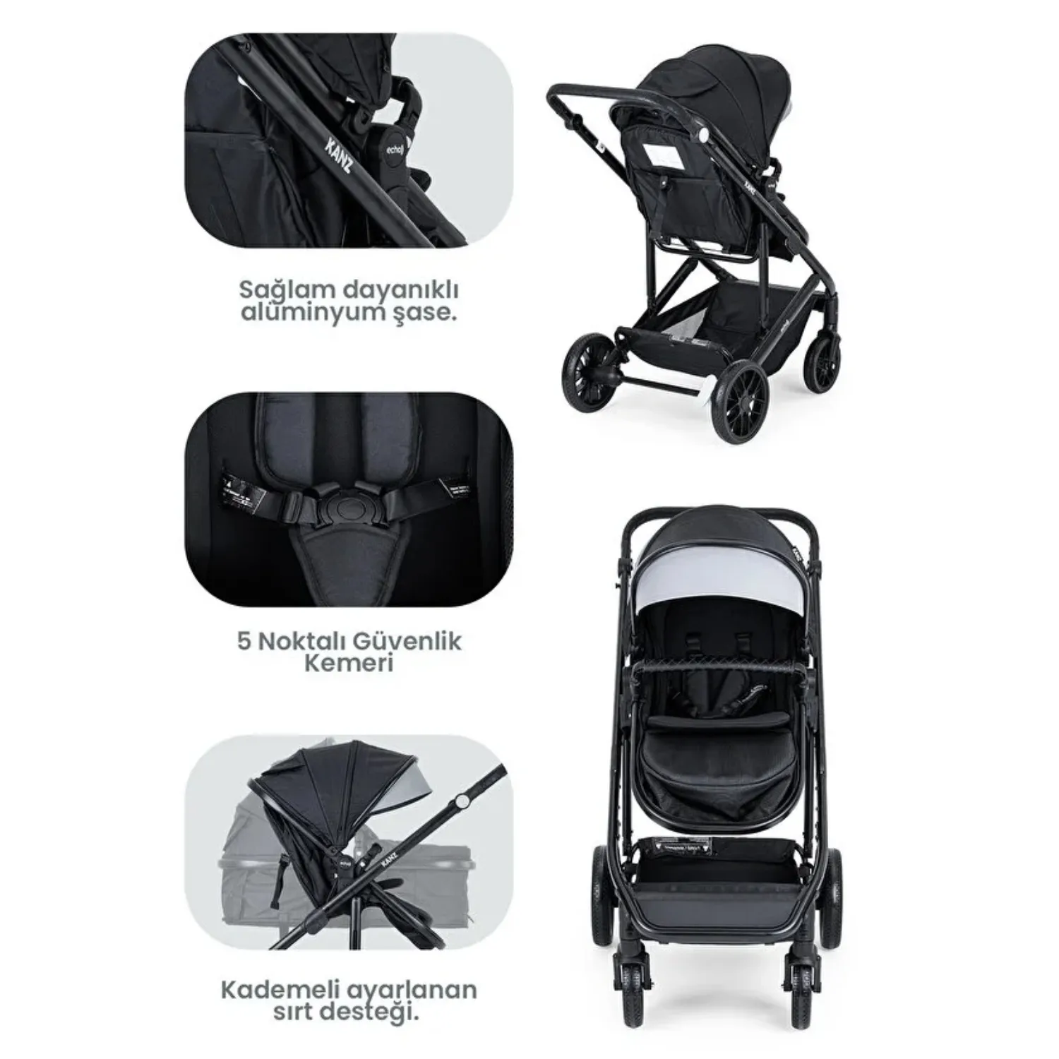 Kanz Echo Travel Sistem Bebek Arabası Siyah