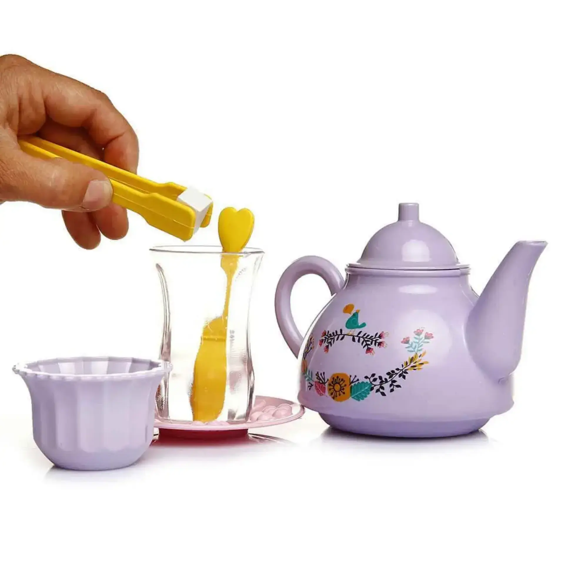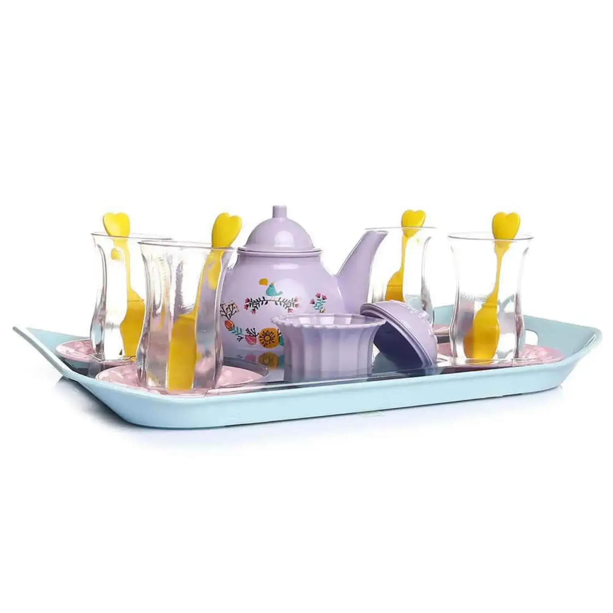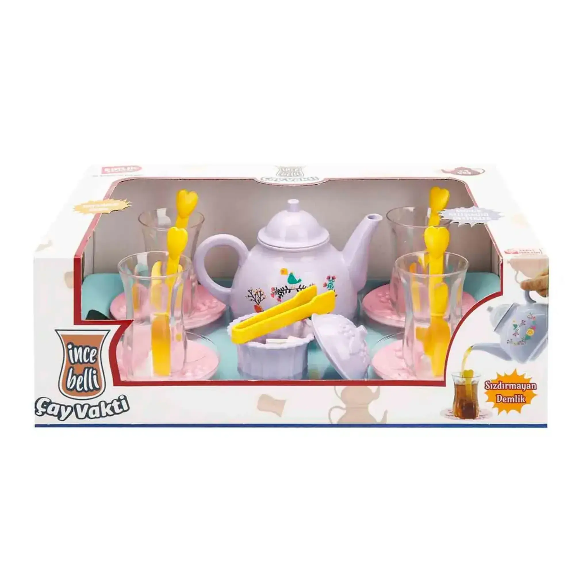 Şekerliğinden demliğine en ince ayrıntısına kadar düşünülmüş bu oyun seti sayesinde evcilik oyunları artık çok daha keyifli! İçinde bulunan sızdırmayan demlik ile arkadaşlarına çay doldurabilir, gerçeğine en yakın şekilde tasarlanmış ince belli bardaklarda tepsiye dizerek servis edebilirsin.