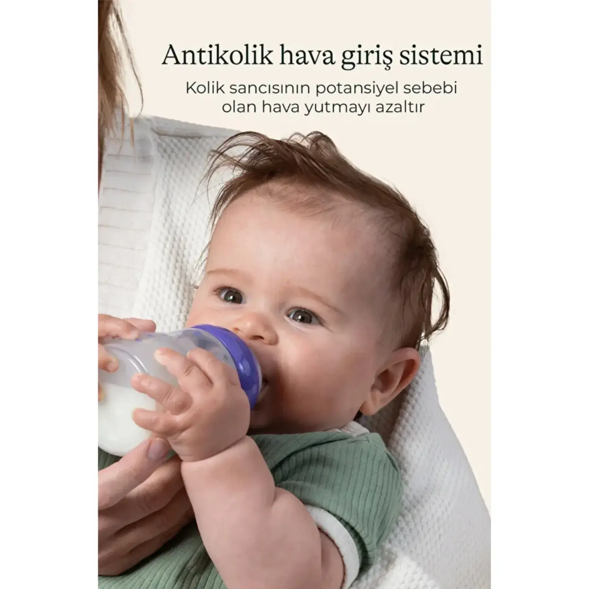 - Antikolik hava giriş sistemi; kolik sancısının potansiyel sebebi olan hava yutmayı azaltır.