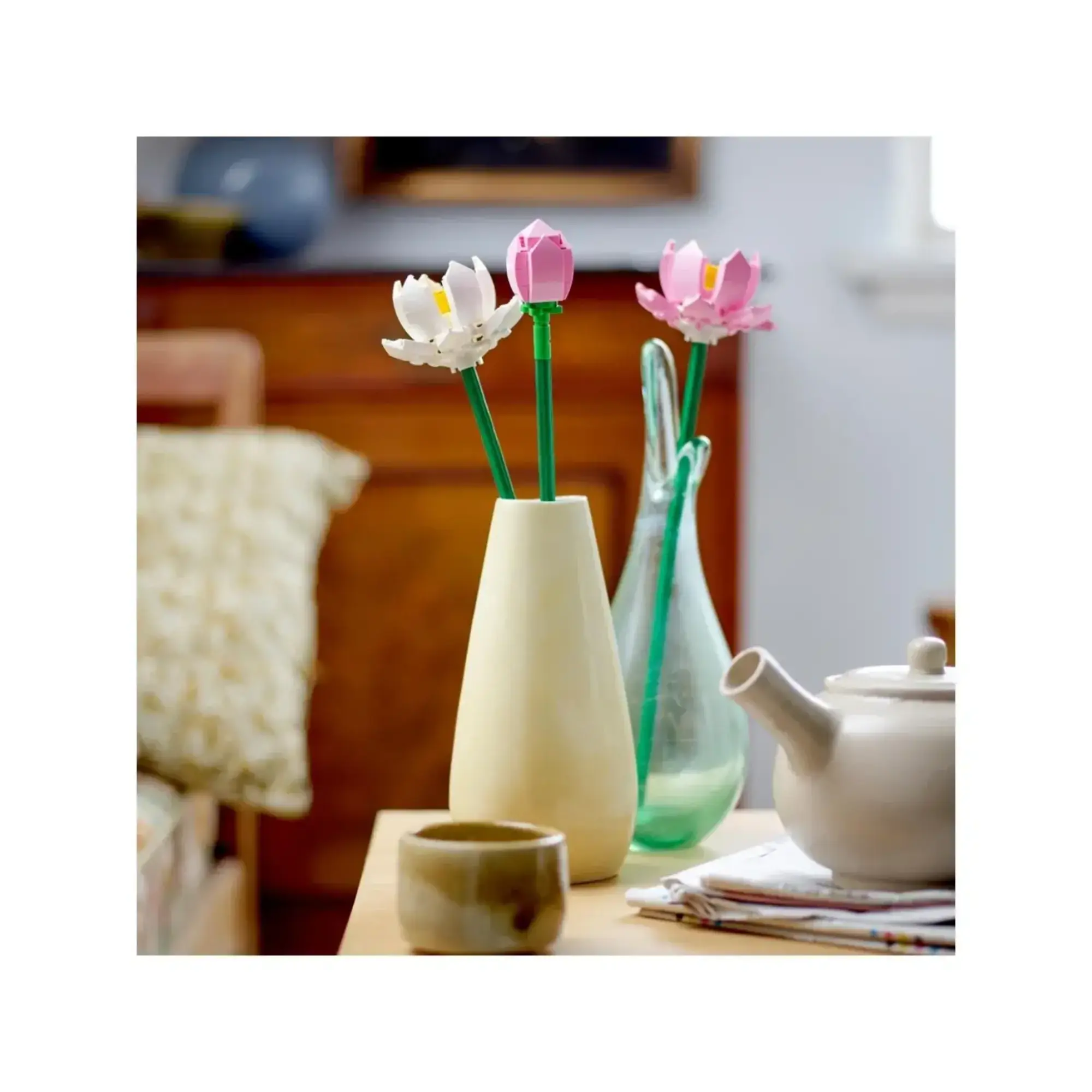 - LEGO® Lotus Çiçekleri (40647) yapım setiyle bir doğa harikasını canlandırın. Dünya çapında sevilen çiçeğin bu LEGO yorumu, vazoda sergilemek için uzun yeşil saplar üzerinde, narin pembe beyaz renklerde, tam açmış 2 Lotus çiçeğini ve bir tomurcuğu betimliyor. Bu güzel LEGO buketi, harika bir doğum günü, yılbaşı ya da sıradan gün hediyesi olabilir ve diğer inşa edilebilen LEGO çiçek setleriyle (ayrı satılır) birleştirilebilir.