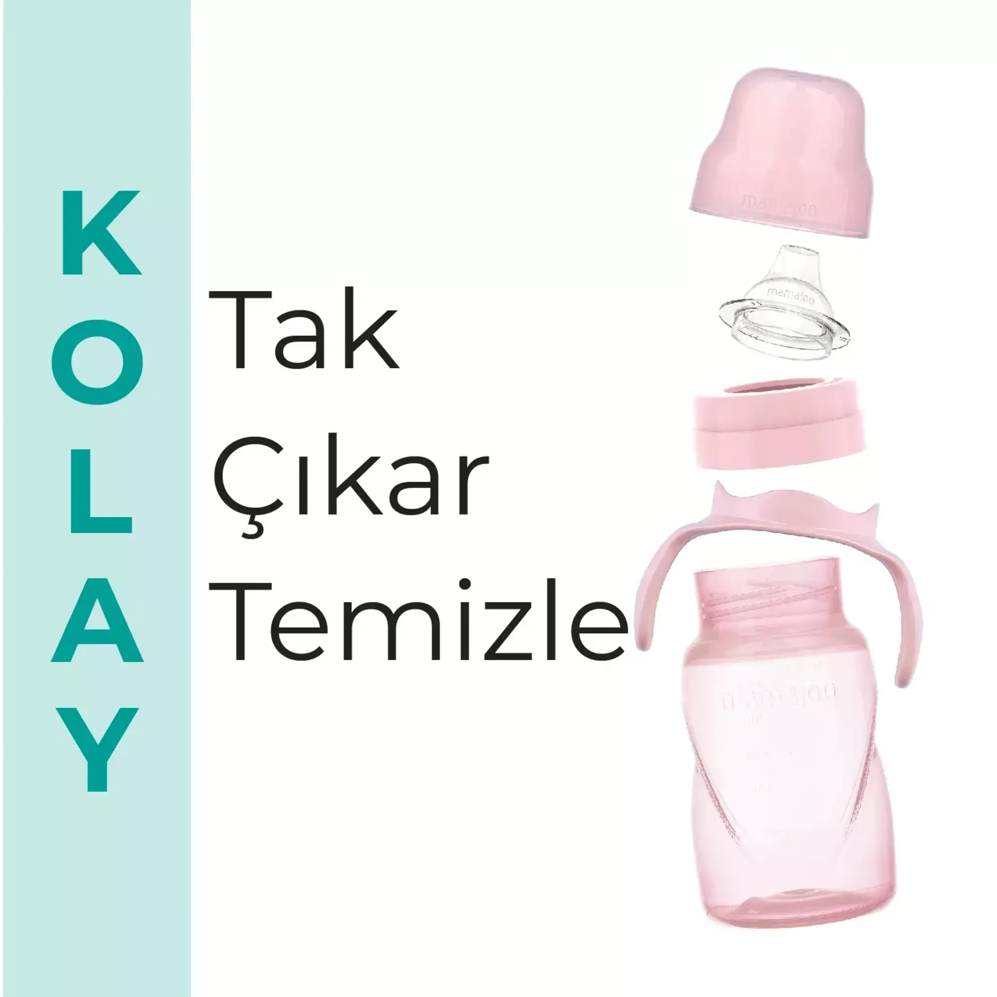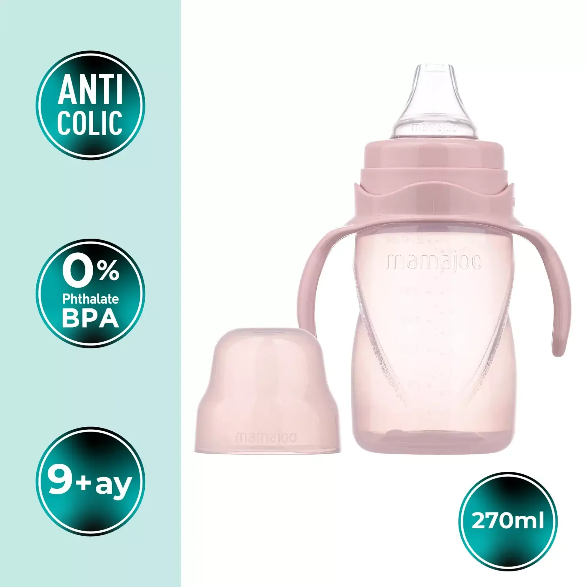 - Mamajoo Kulplu Eğitici Bardaklar, bebek sağlığına önem verilerek BPA içermeyen yüksek kaliteli ham maddeden üretilmiştir. Bebeklerin biberondan bardağa kolayca geçmesine ve içmeyi öğrenmesine yardımcı olmak için tasarlanmıştır. Mamajoo Kulplu Eğitici Bardaklarda bulunan anti-kolik valf sistemi sayesinde bardağın içindeki havayı dışarı atmaya yardımcı olarak bebeklerde gaz oluşumu riskini en aza indirir. Ters veya yana yatık olduğunda zamanlarda bile akıtmaz ve sızdırma yapmaz. Böylece, evde veya ev dışındaki alanlarda, özellikle yolculuk sırasında pratik bir kullanım olanağı sağlar.