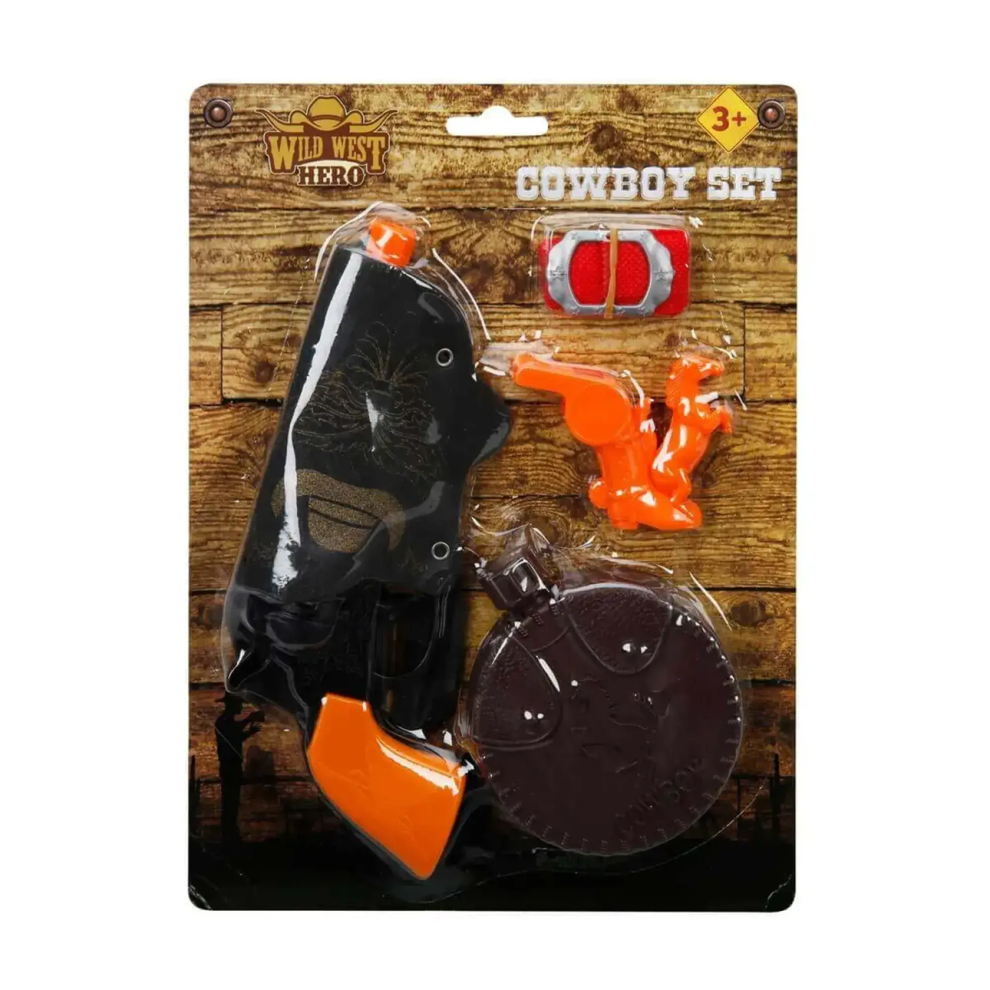 1 adet kovboy tabancası, silah kılıfı, kemer, ve ürünün temasına uygun olan su matarası veya kelepçe gibi çeşitli aksesuarlar yer almaktadır.