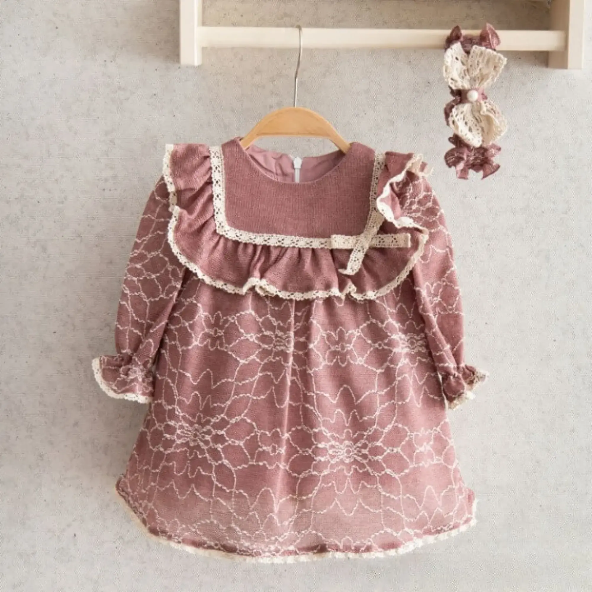 Miomini Elbise Saç Bantlı Triko Kopanakili Gül Kurusu