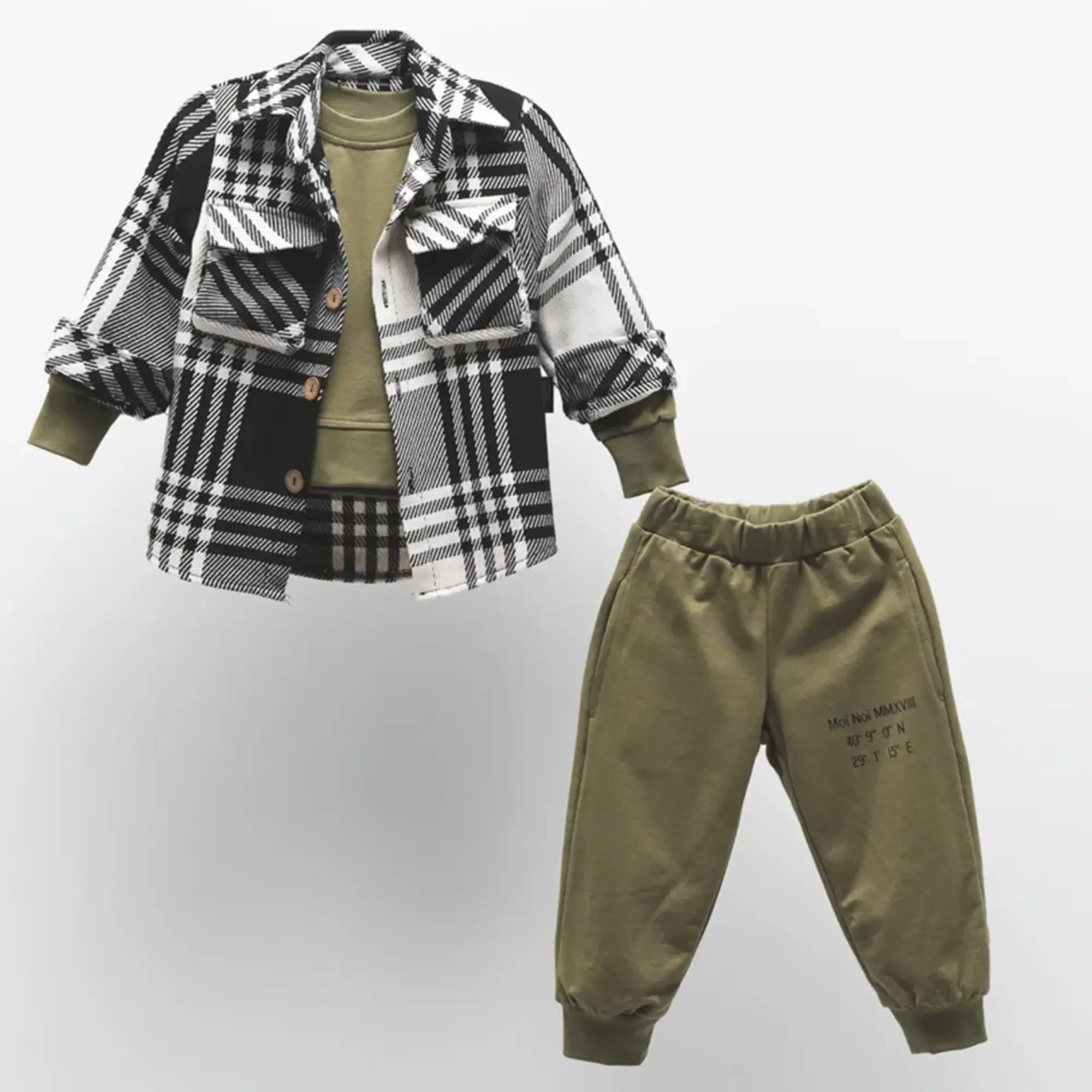 Bu gömlek ve sweatshirt takımı, her yaştan bebek ve çocuklar için mükemmel bir seçimdir.