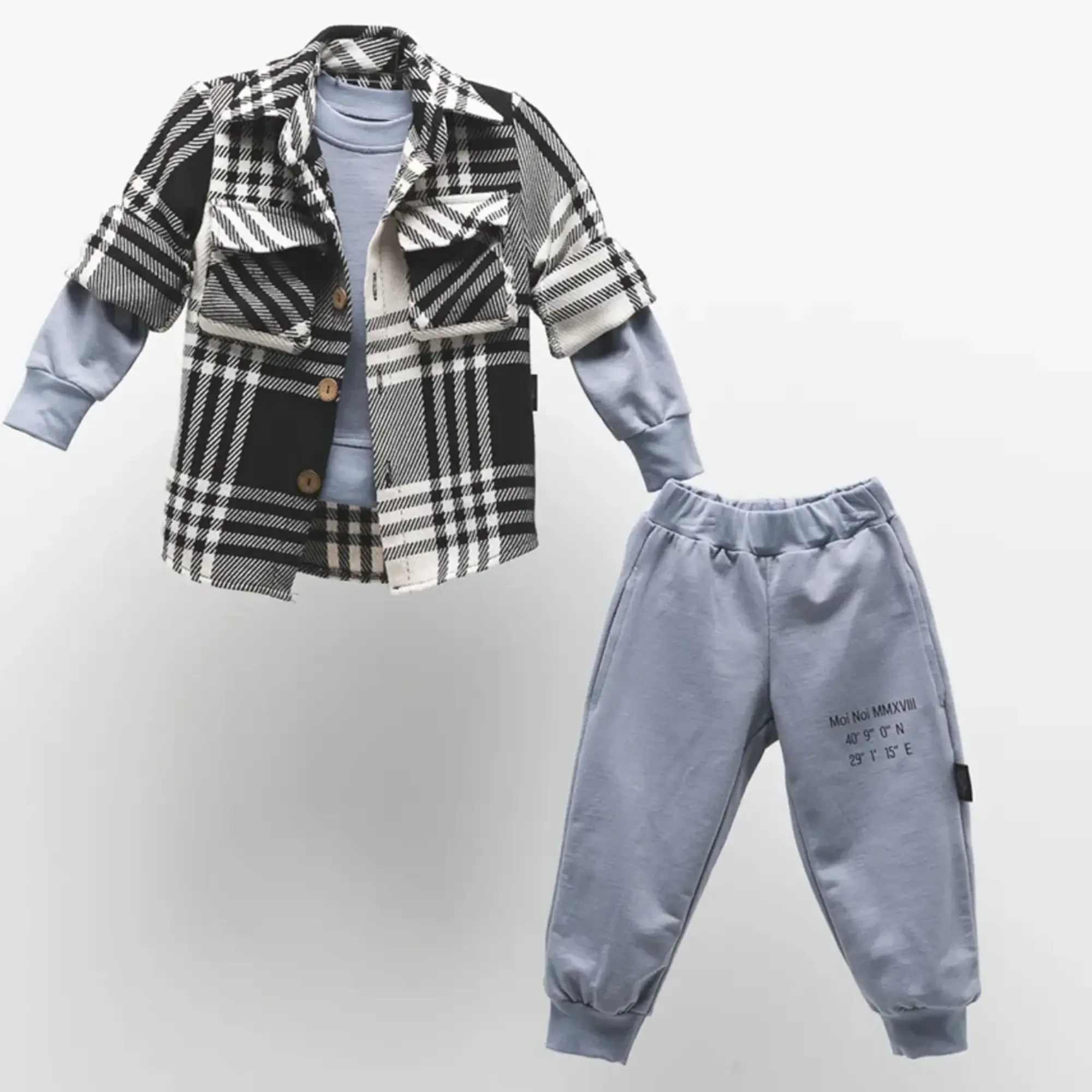 Bu gömlek ve sweatshirt takımı, her yaştan bebek ve çocuklar için mükemmel bir seçimdir.
