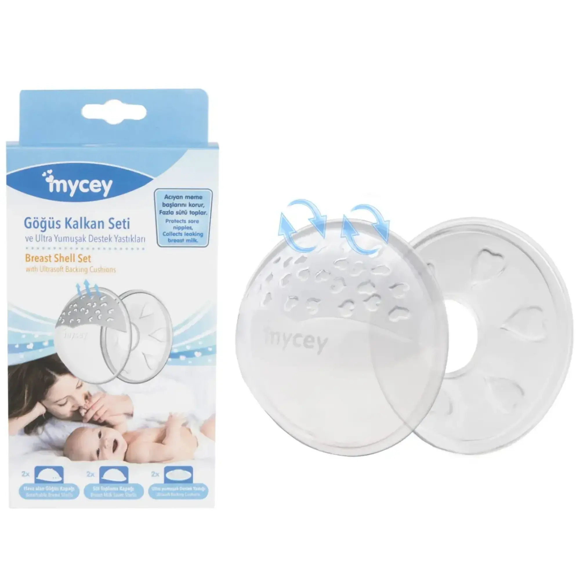 - Ultra yumuşak yastıklı göğüs kalkanları göğüs uçlarını sürtünmelerden korumak ve sızan anne sütünü biriktirmek için sütyenin içine giyilir.