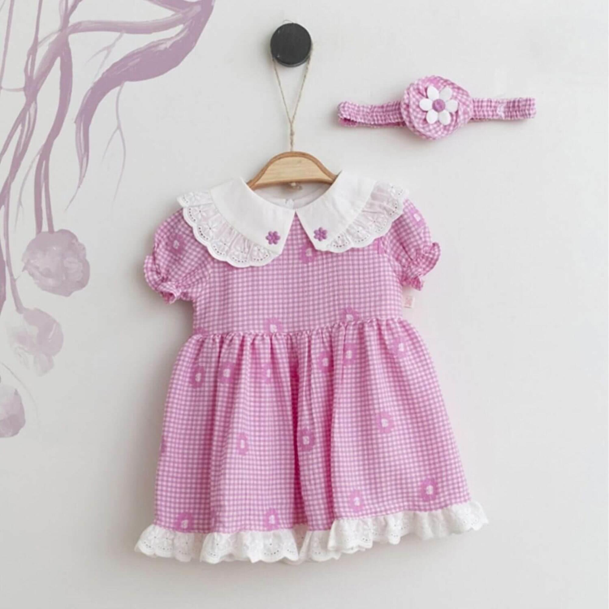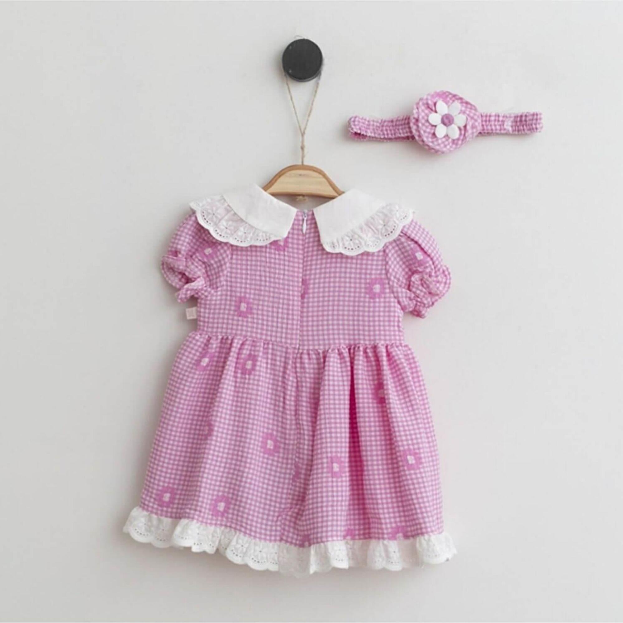 Mymio Elbise Bant Takım Çiçek Nakışlı Pembe