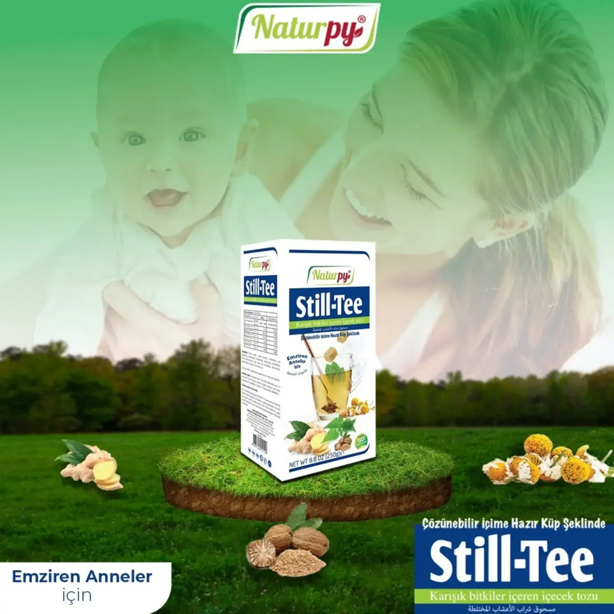 Naturpy Still Tee/Milk Tea dengeli içeriği ile annenin emzirme döneminde artan sıvı ihtiyacının karşılanmasına yardımcı olur. İçeriğindeki bitkilerde bulunan vitamin ve mineraller ile destek sağlar.