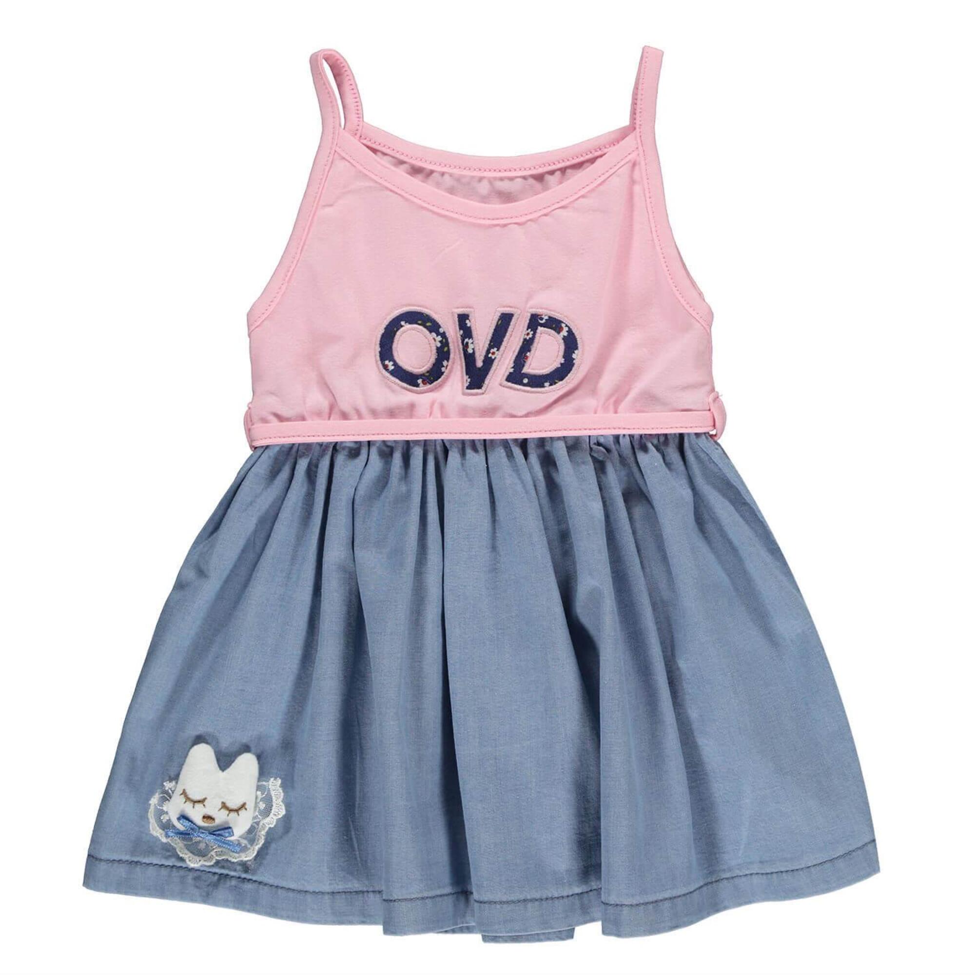 Overdo Elbise Tavşan Nakışlı Kot Pembe