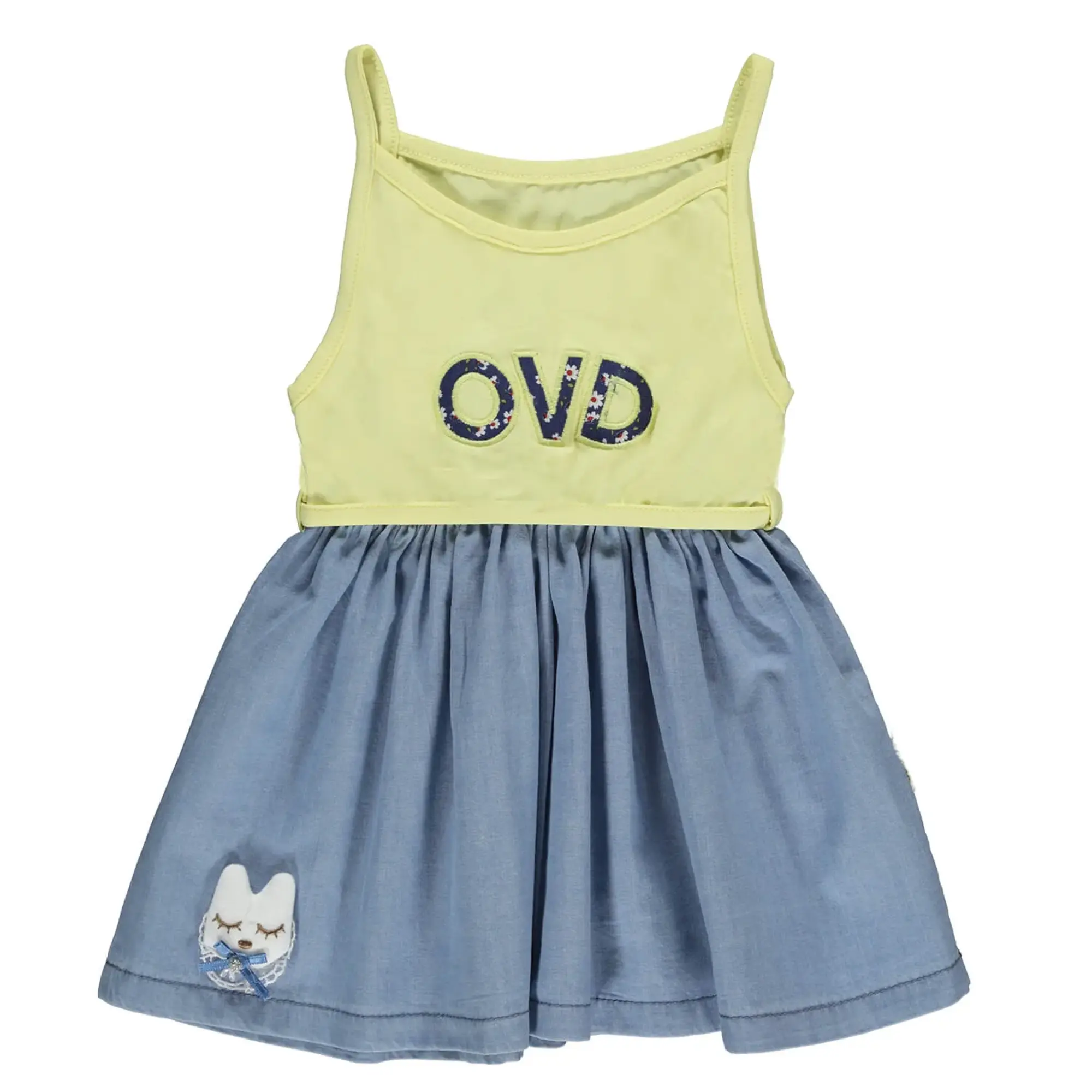 Overdo Elbise Tavşan Nakışlı Kot Sarı