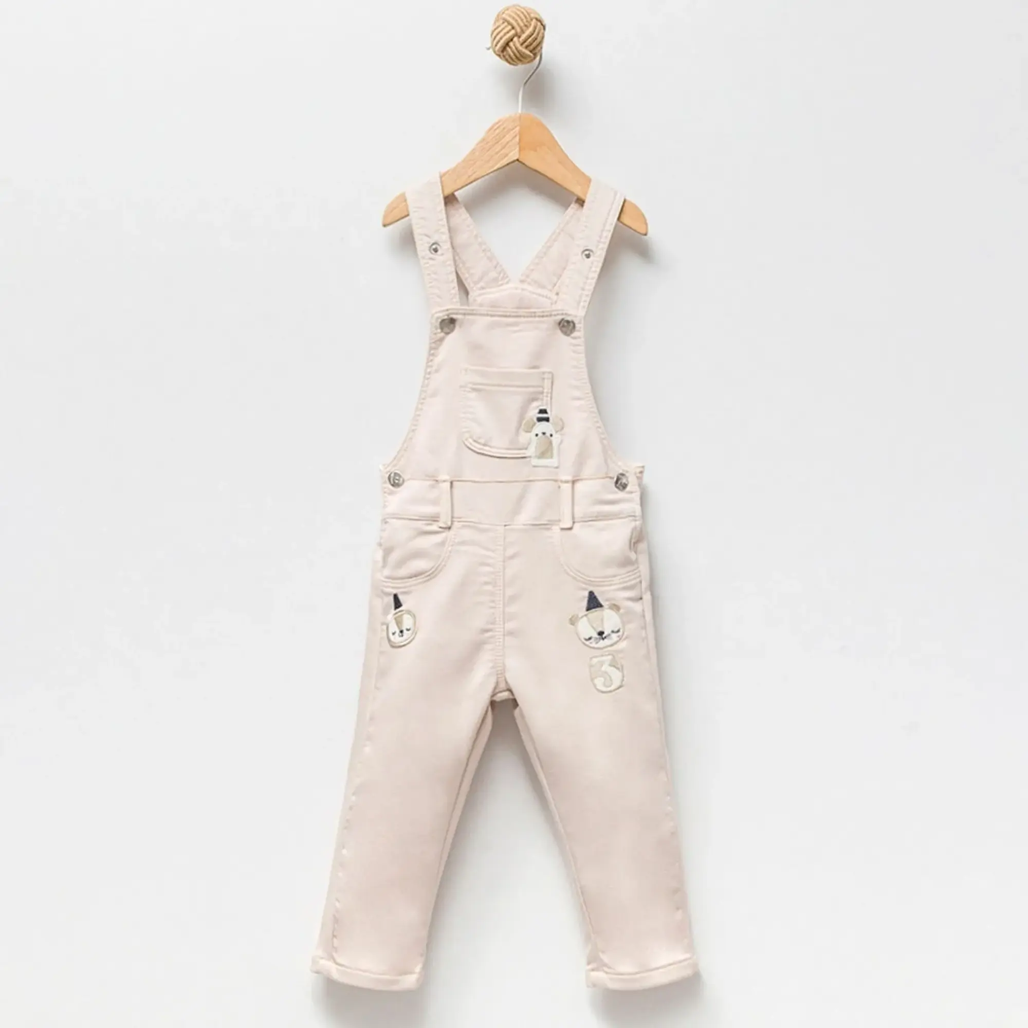 Overdo Salopet Ham Nakışlı Bej