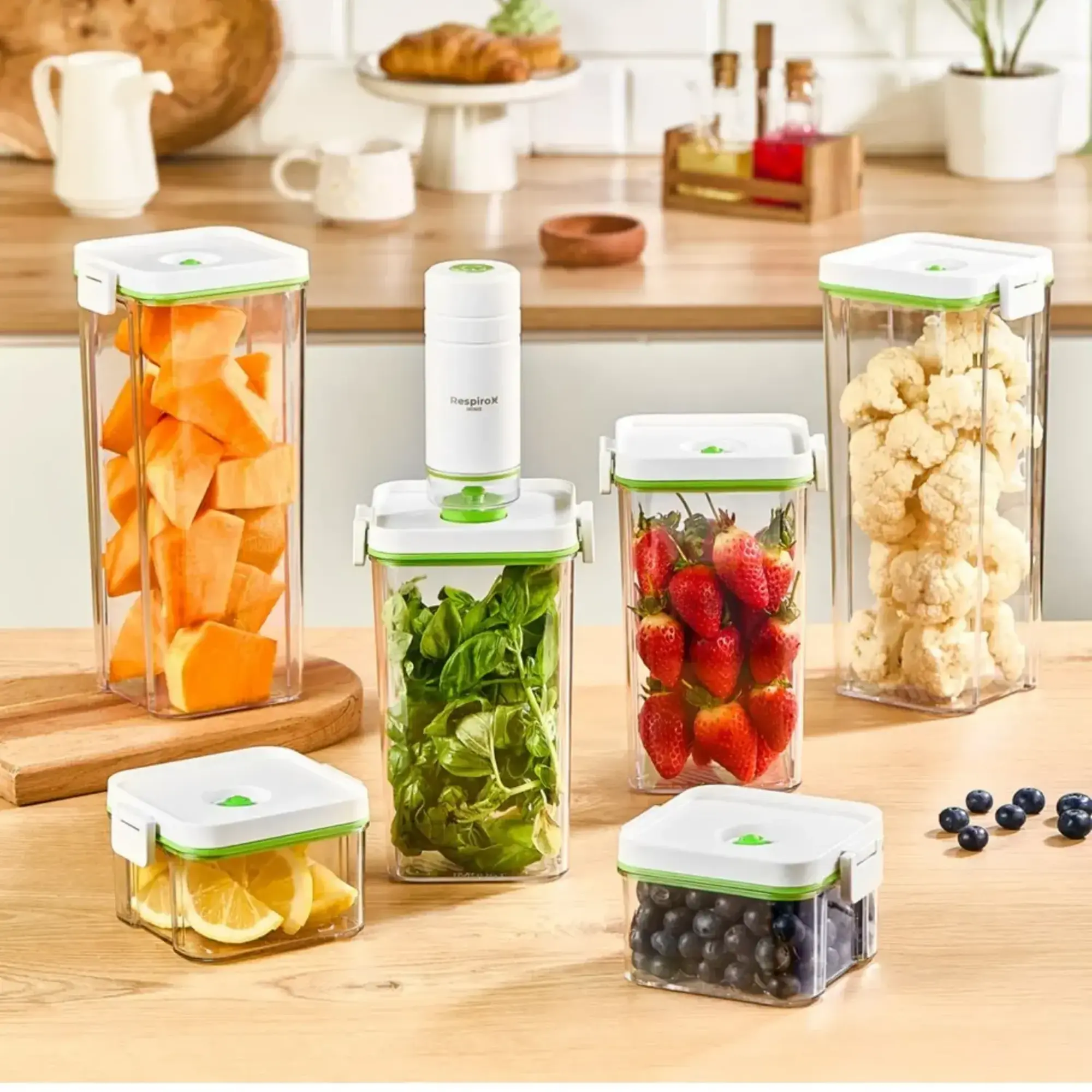 Respiroxhome Vakumlu Saklama Kabı Seti 6lı Şarjlı Otomatik Pompalı