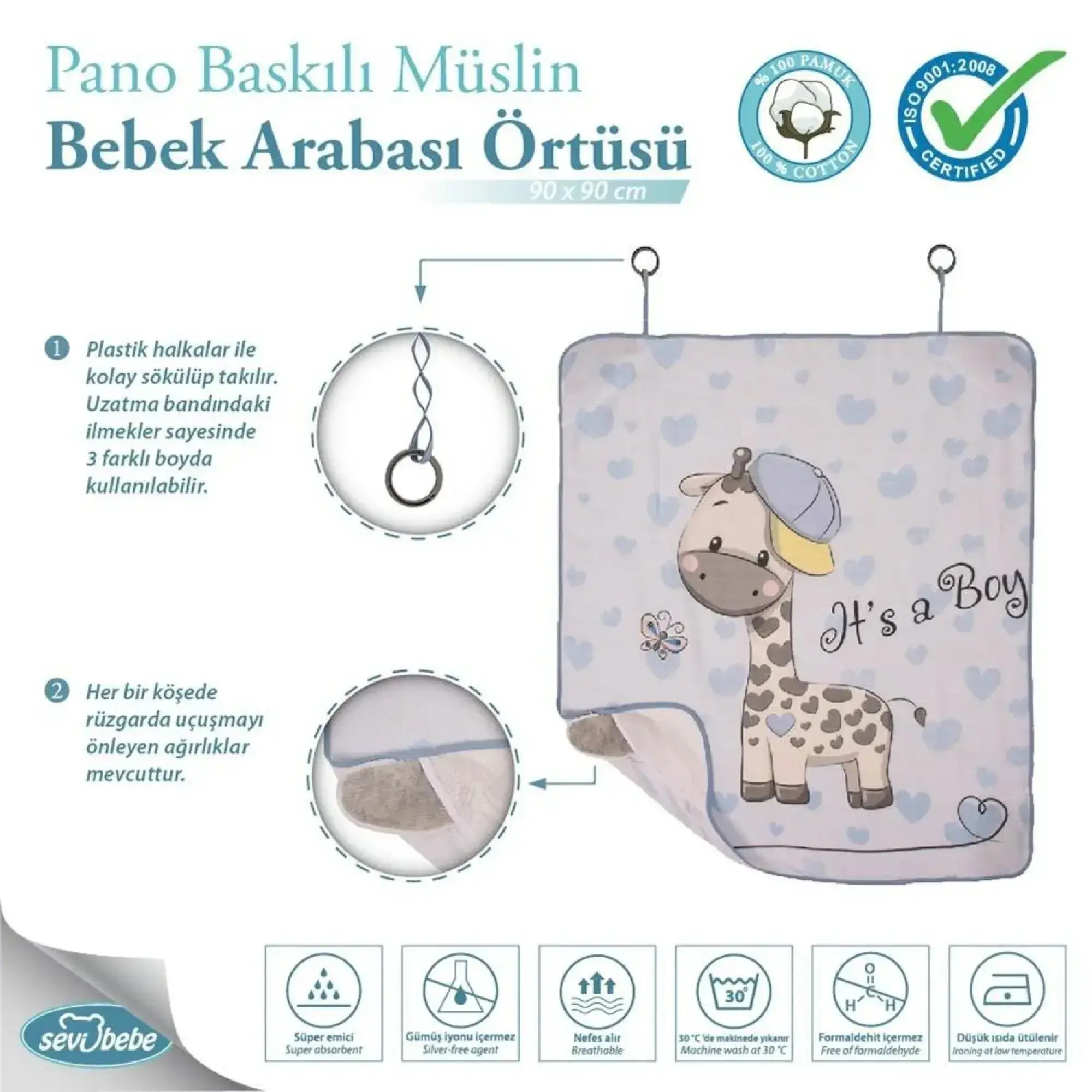 Sevi Bebe Müslin Bebek Arabası Örtüsü Pano Baskılı Zürafa
