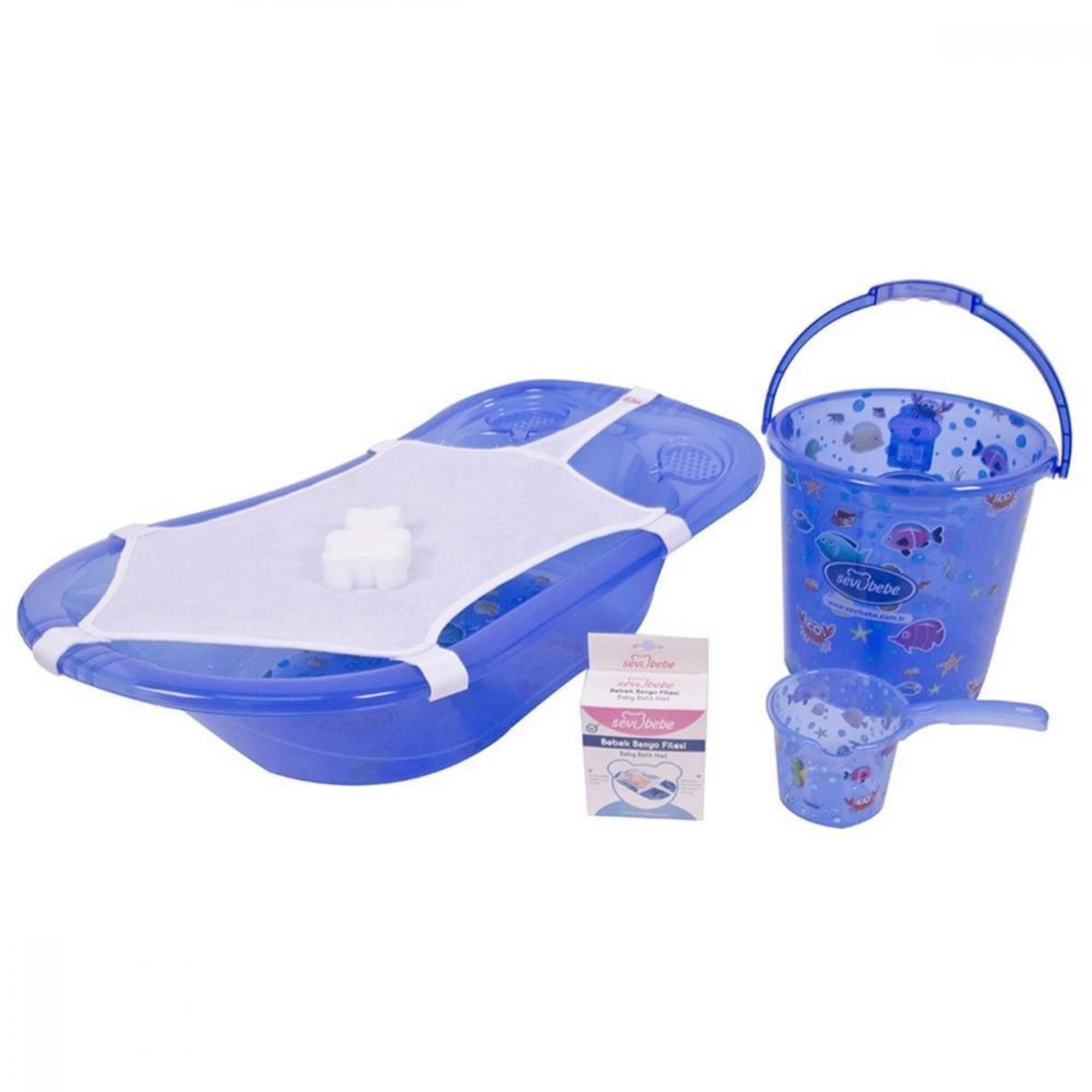 Sevi Bebe Şeffaf Desenli Bebek Banyo Seti 5 Parça Mavi