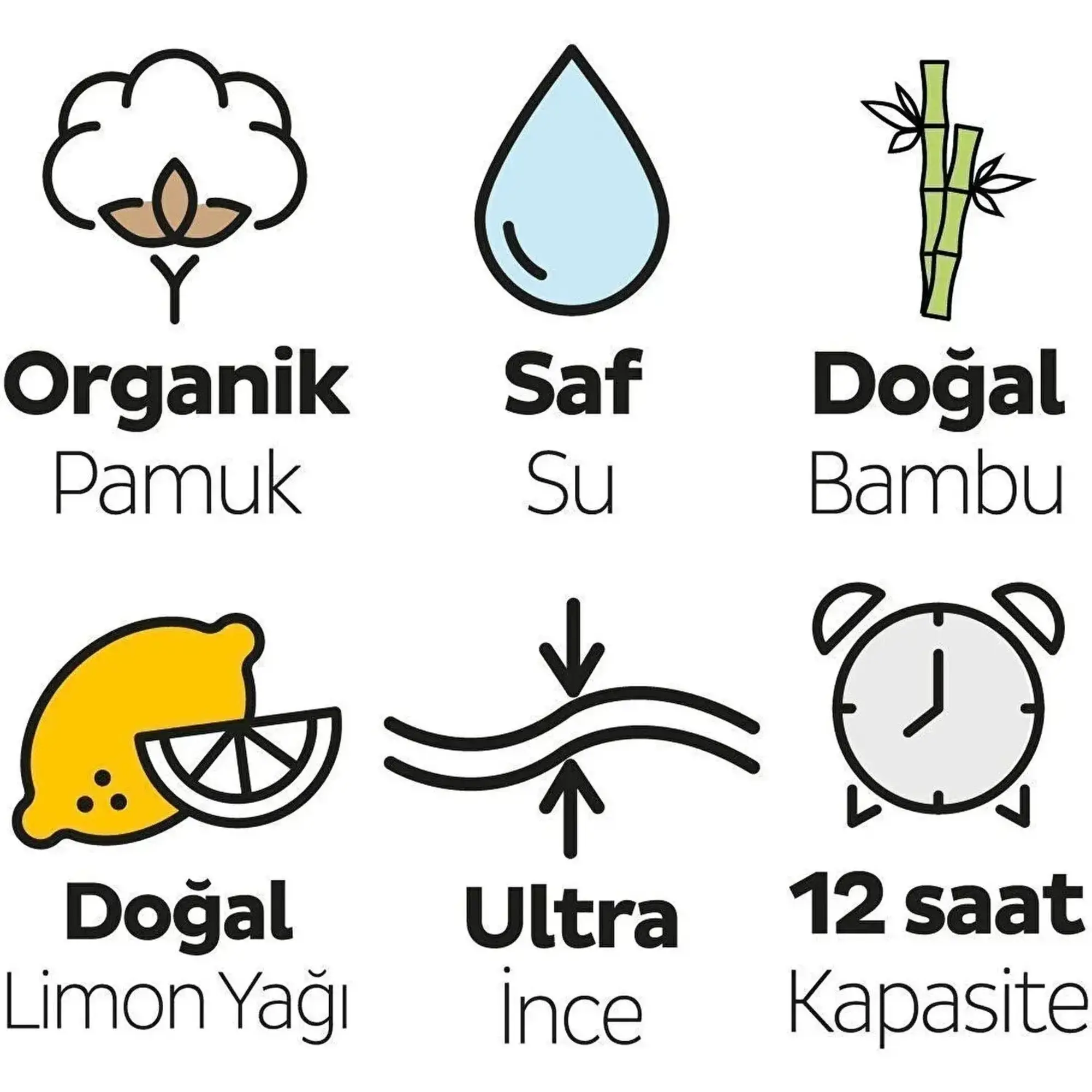 - Doğal bambu özlü emici lifler sayesinde sıvı emiş hızı artırılarak doğal performans kazandırılır.