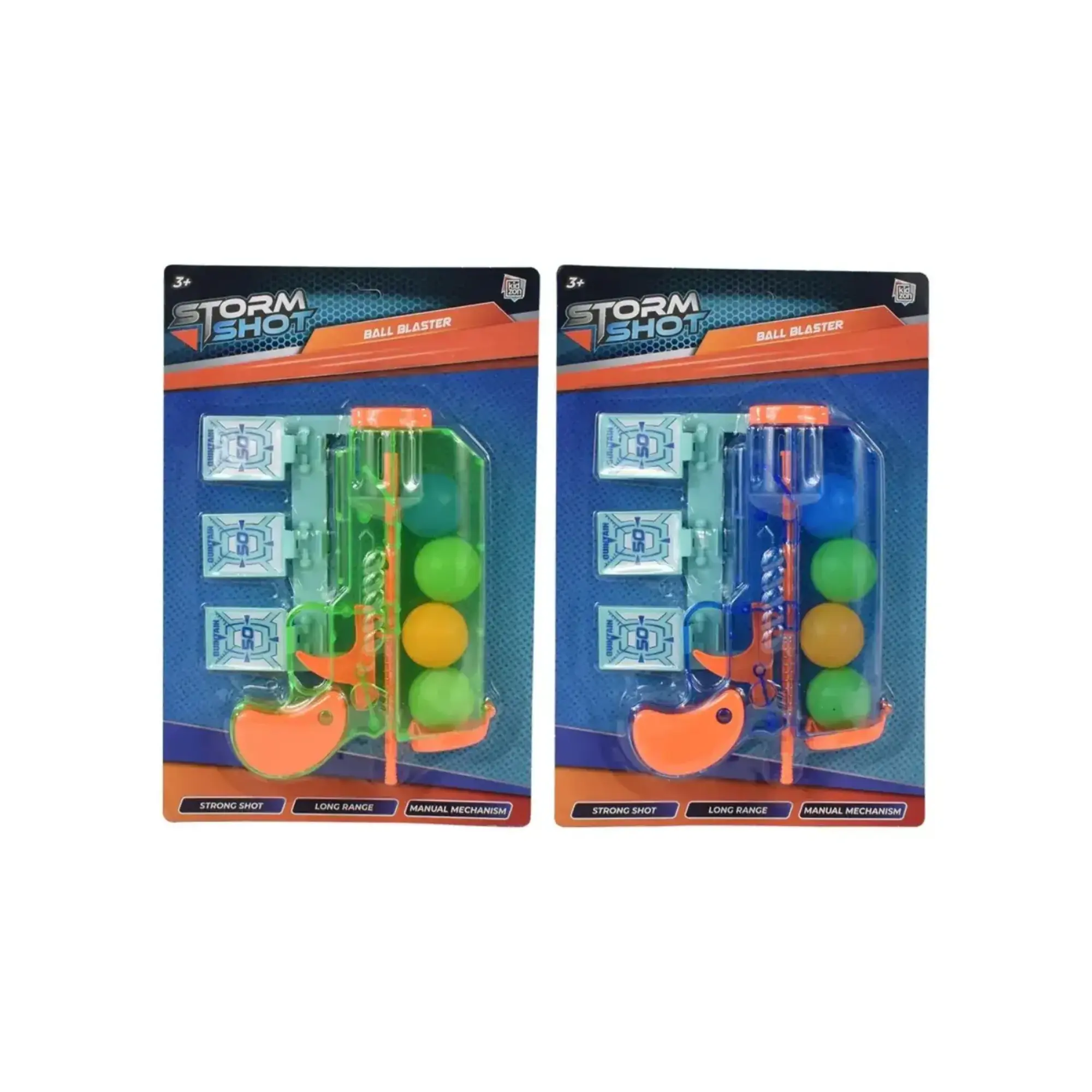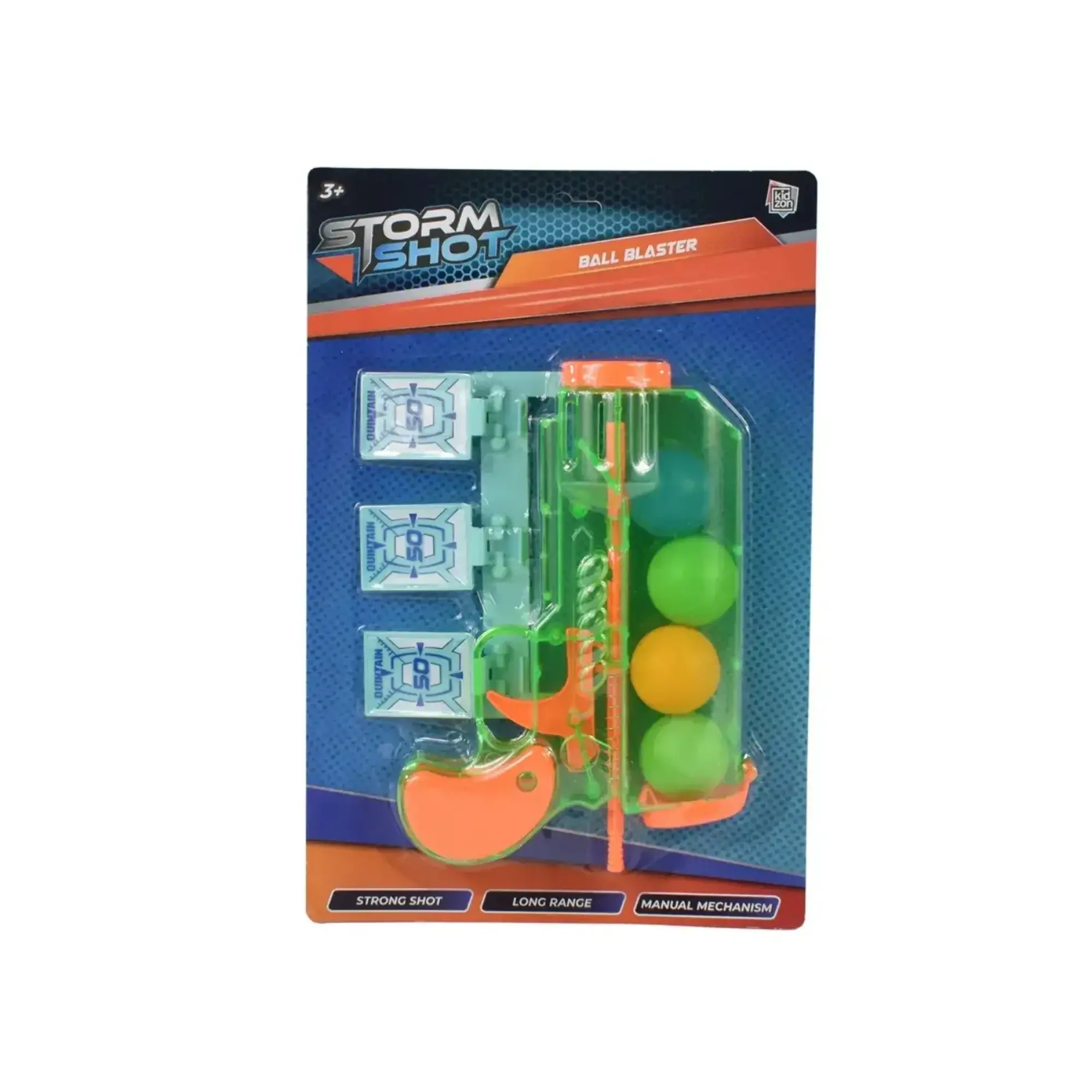- Bir tabanca, bir hedef ekranı ve dört plastik top içerir.