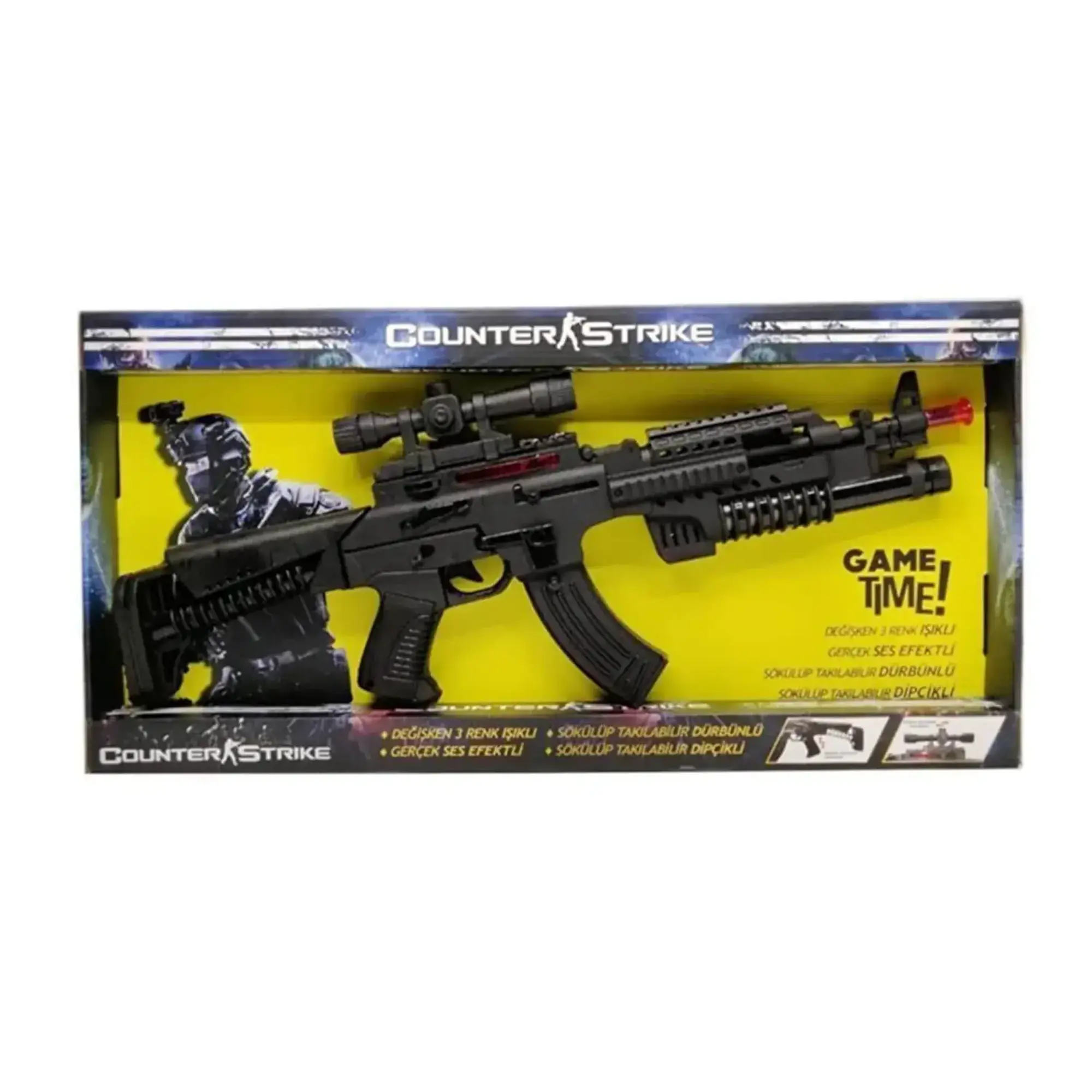 - Counter Strike Er-109 komando tüfeği türkçe ses efektli pilli ışıklı ve müziklidir.
