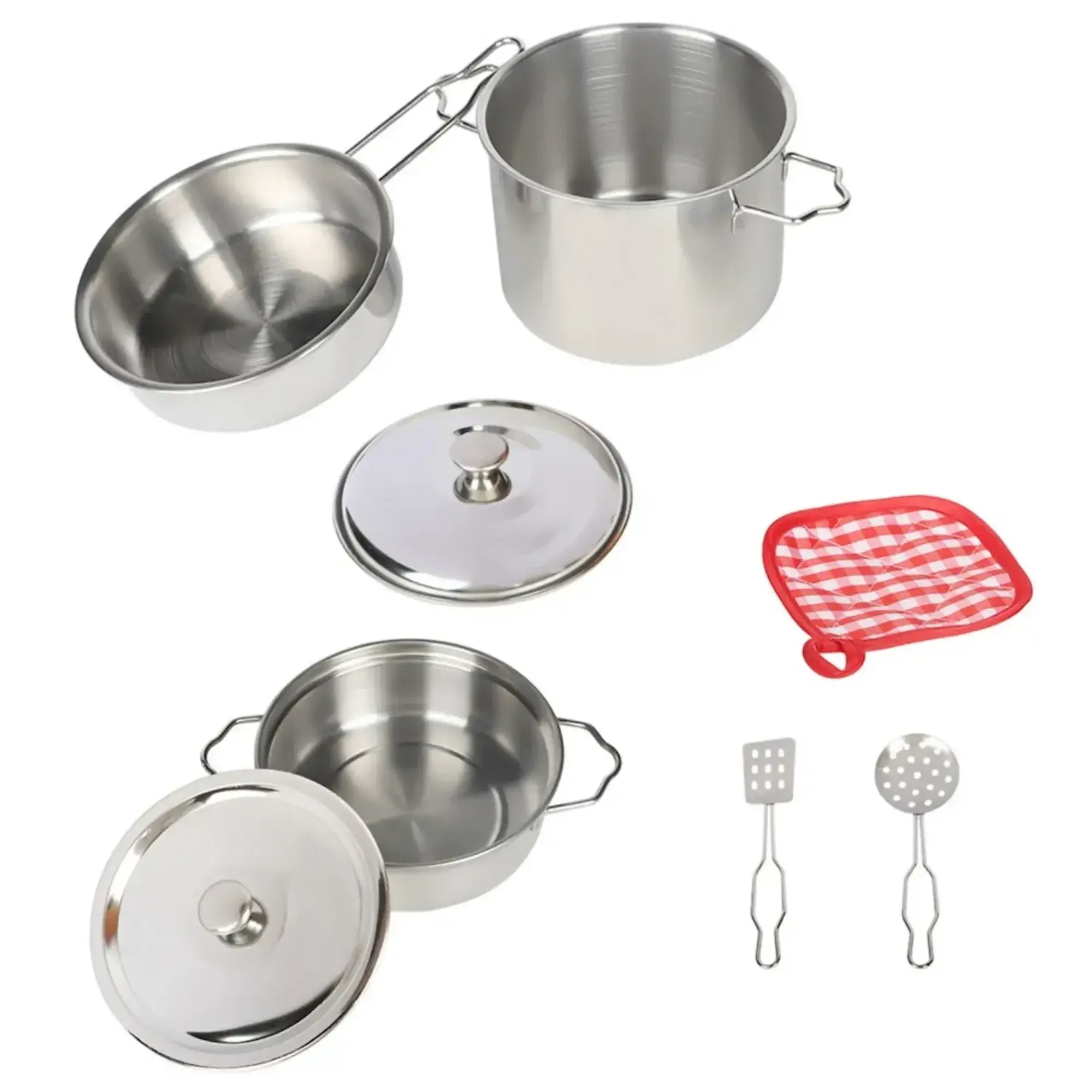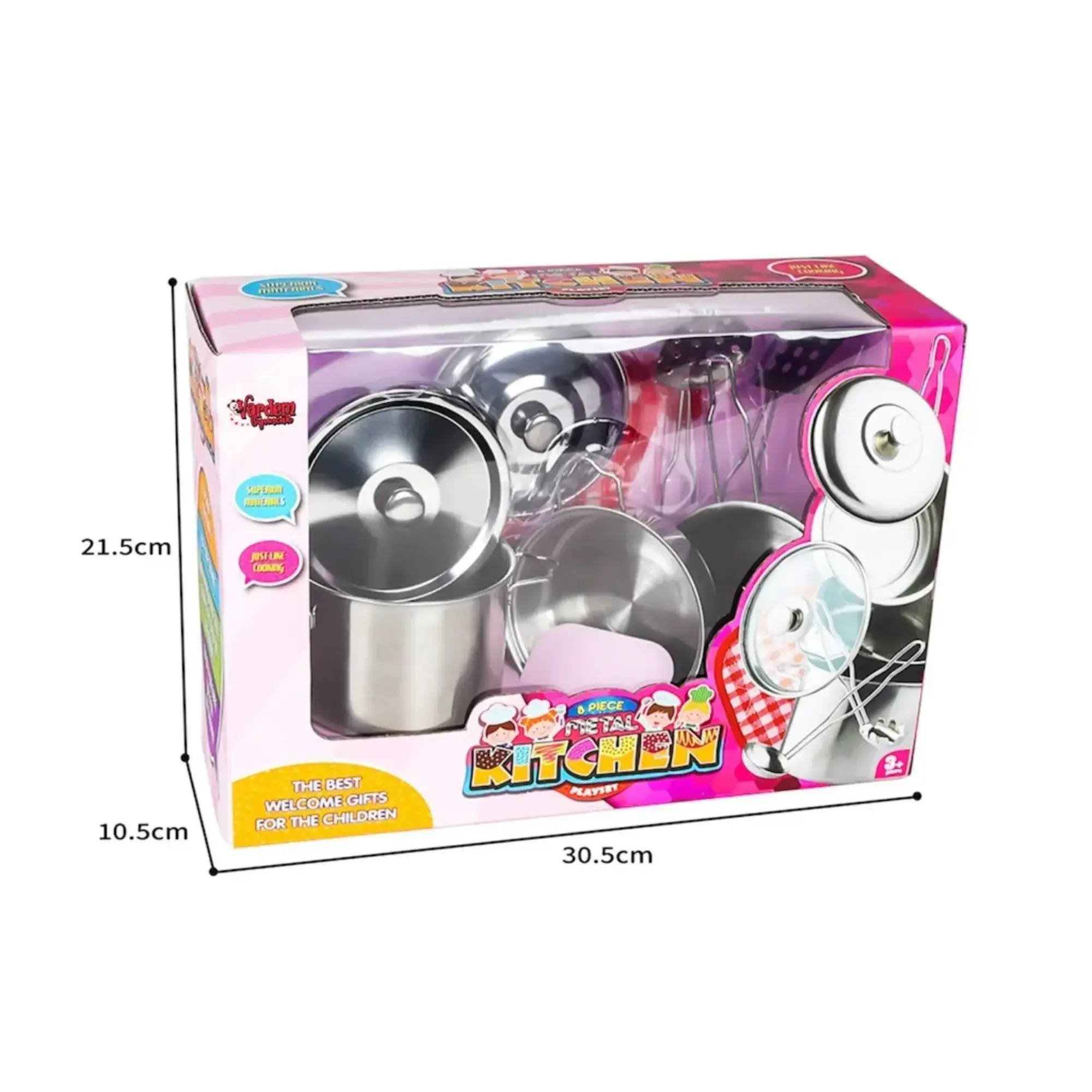 Vardem 8 Parça Çelik Tencere Tava Seti (Model: ATF-1818-1A-3), çocukların mutfak oyunlarını daha gerçekçi ve eğlenceli hale getiren bir oyuncak setidir.